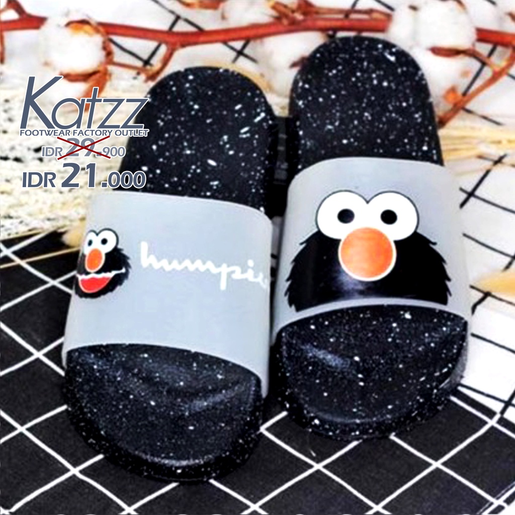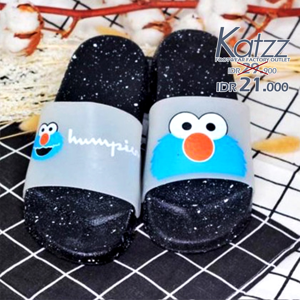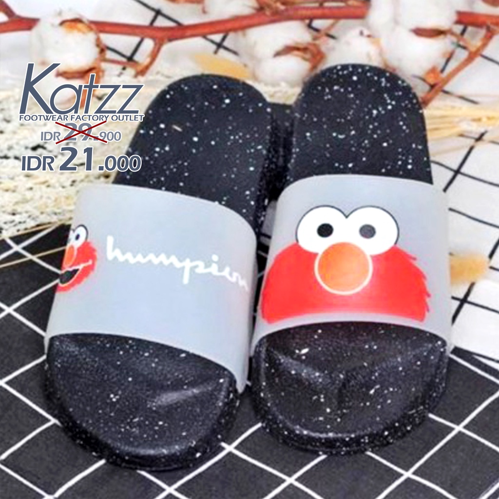 KATZZ - Sandal Santai Karakter Elmo Lucu alas hitam. Sandal SLOP Karet PVC KARET PCU kekinian [SWALLOW X KATZZ F 01]