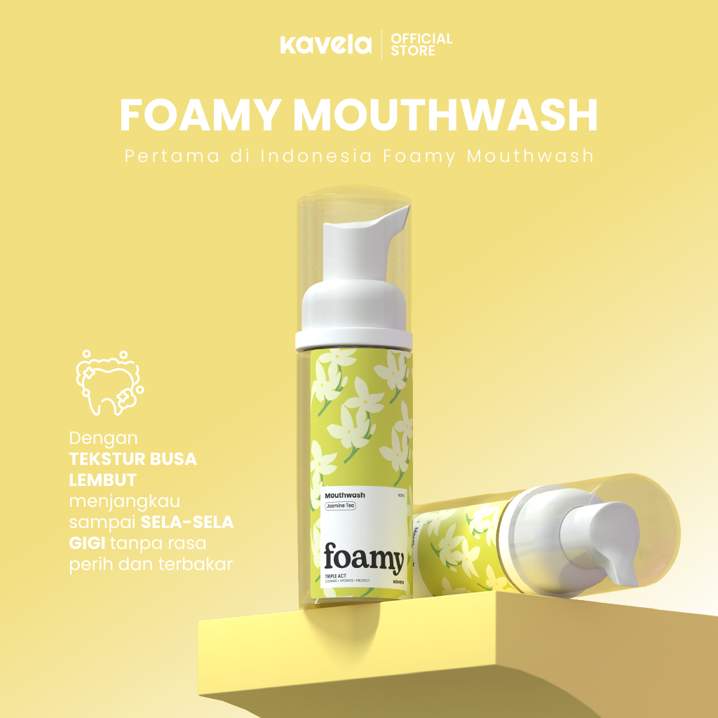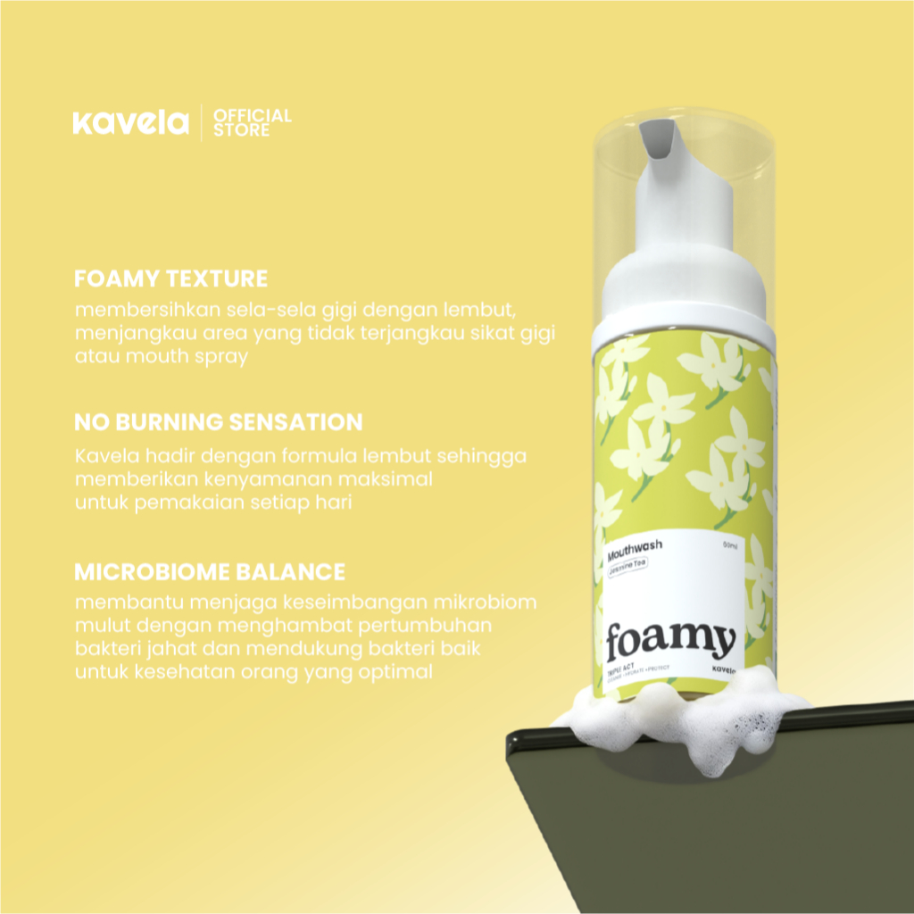 KAVELA - Foamy Mouthwash Jasmine Tea Mouthwash Busa Tanpa Alkohol Segar & Melembabkan atasi Bau Mulut dan Plak