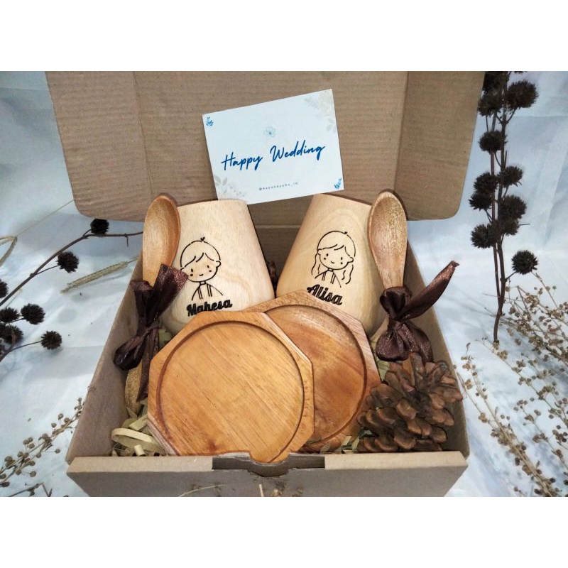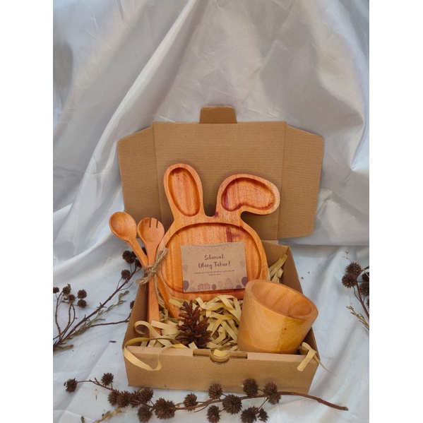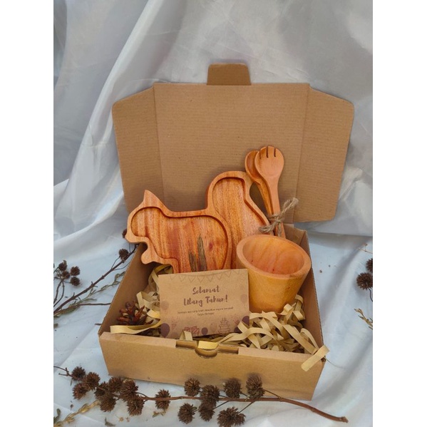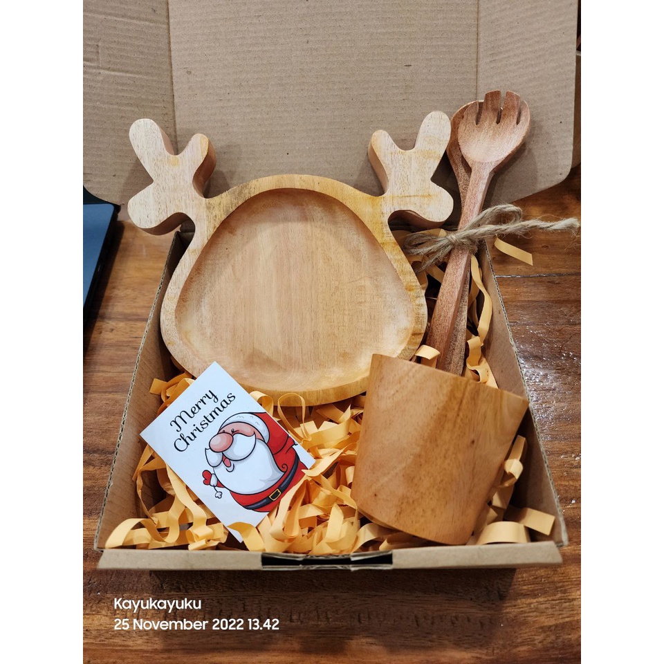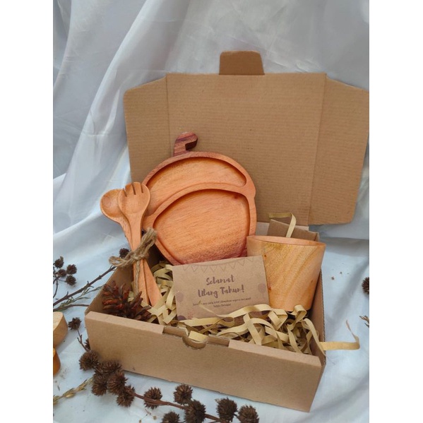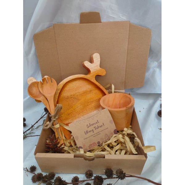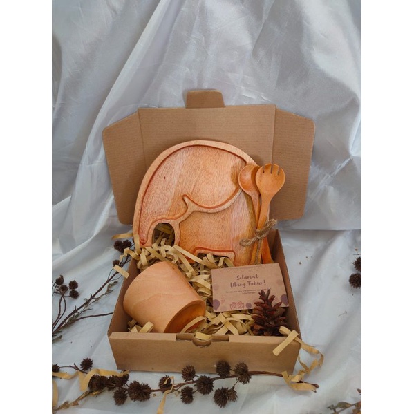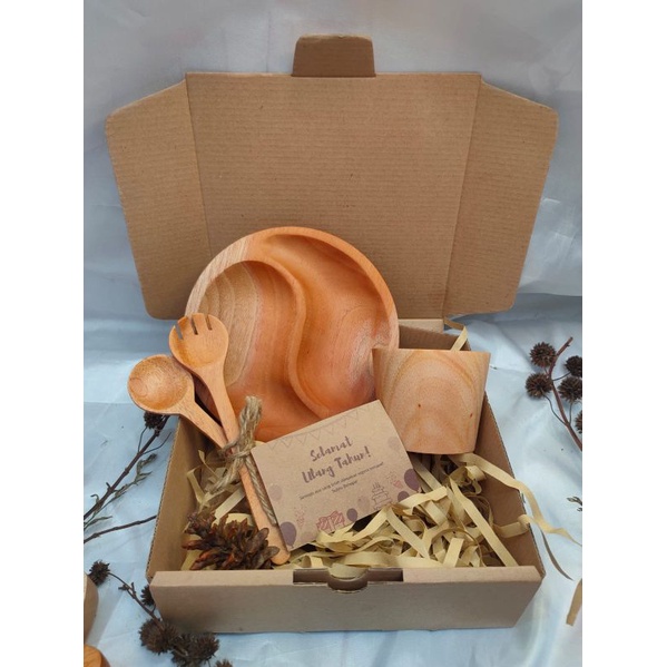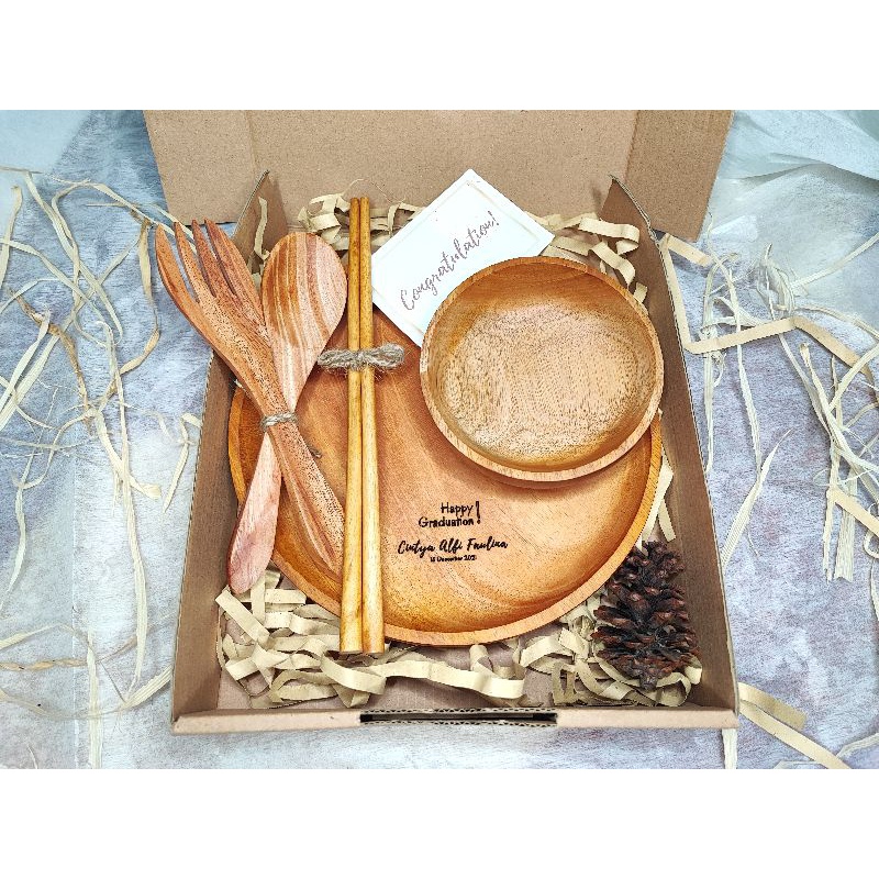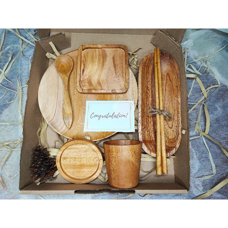 KAYUKAYUKU Hampers Kayu / Hampers Nikah / Kado Ulang Tahun / Piring Kayu Set Free Kartu Ucapan