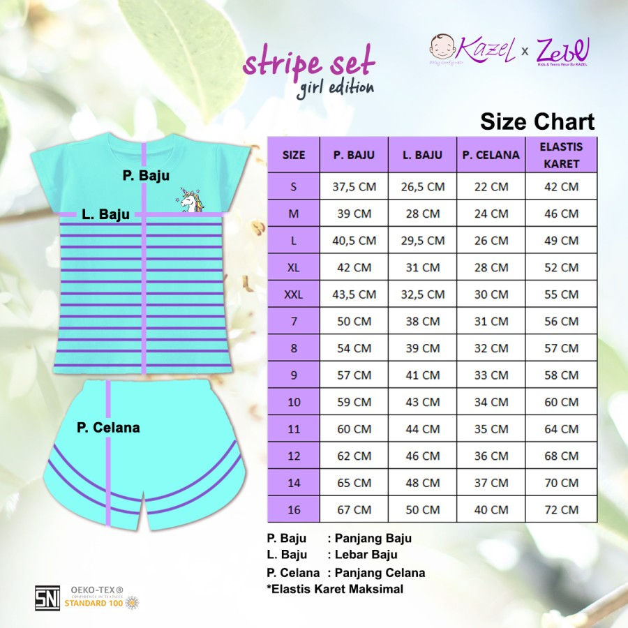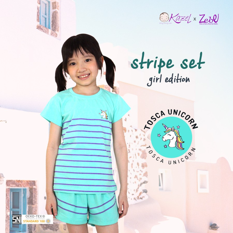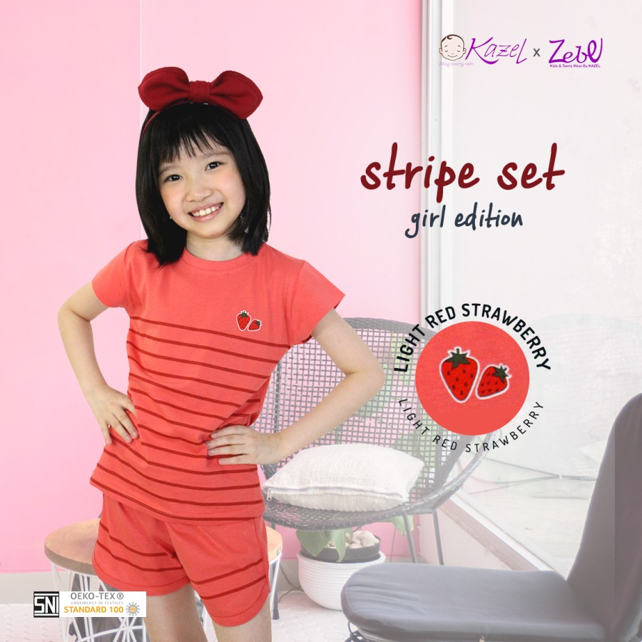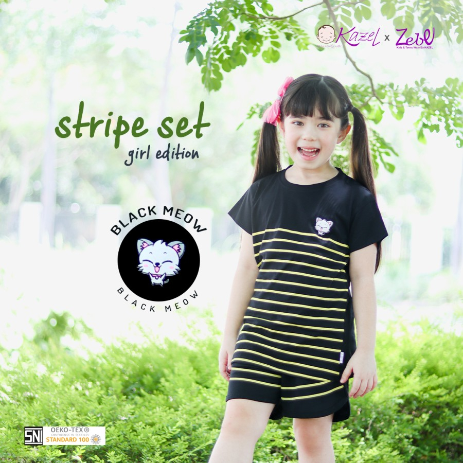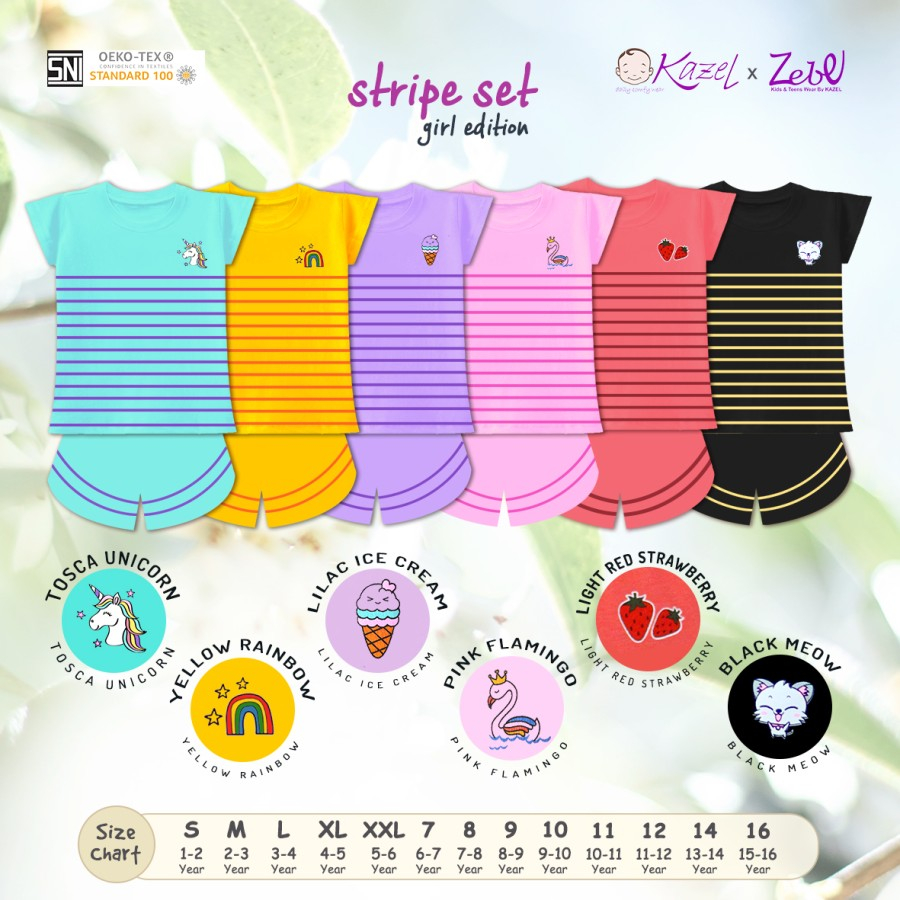 KAZEL Zebe Stripe Set Girl Edition (1 Stel) 6-16 Tahun