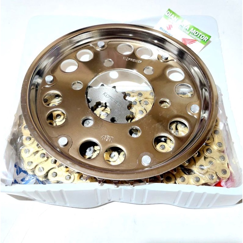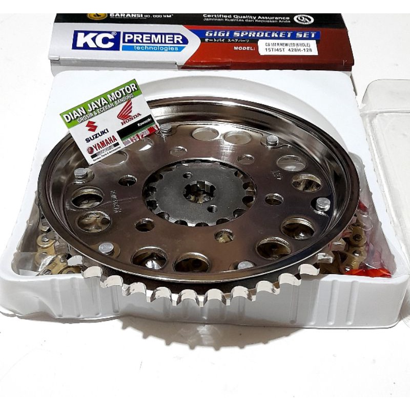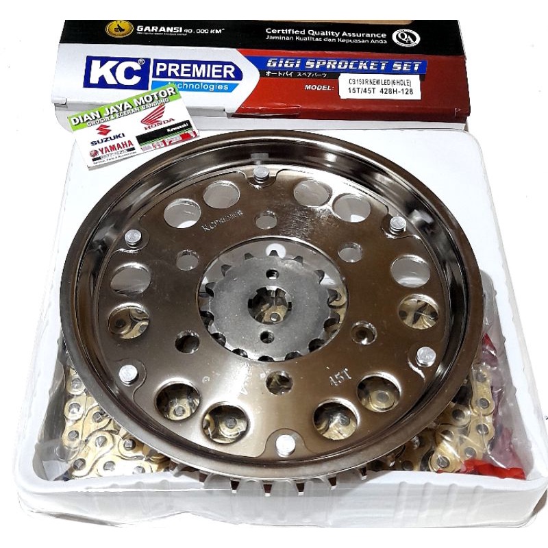 KC Premier Girset Honda CB150R New led ( 6 HOLE ) 15T/45T 428H-128 rantai Gold sss Baja asli gir Gear Gir Paket Gear pamet Drive chainn.kit Ban penggerak