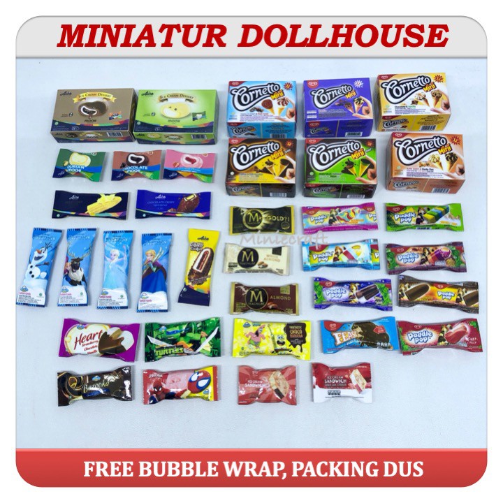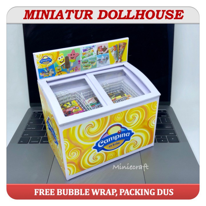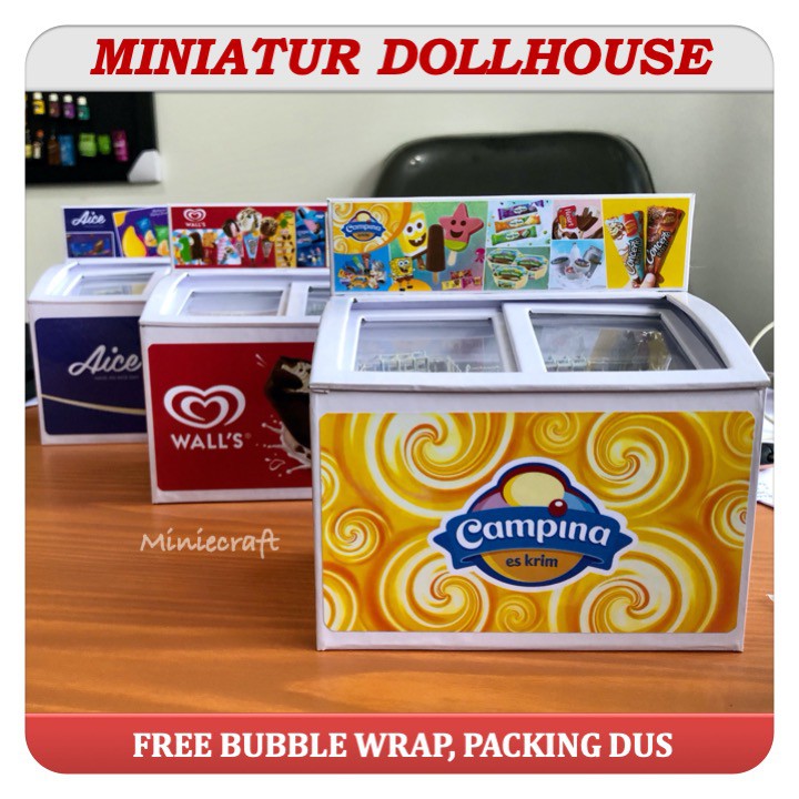 KD83T PAKET HEMAT MINIATUR FREEZER ICE CREAM & 12 PCS DOLLHOUSE ICE CREAM WALLS , AICE, CAMPINA