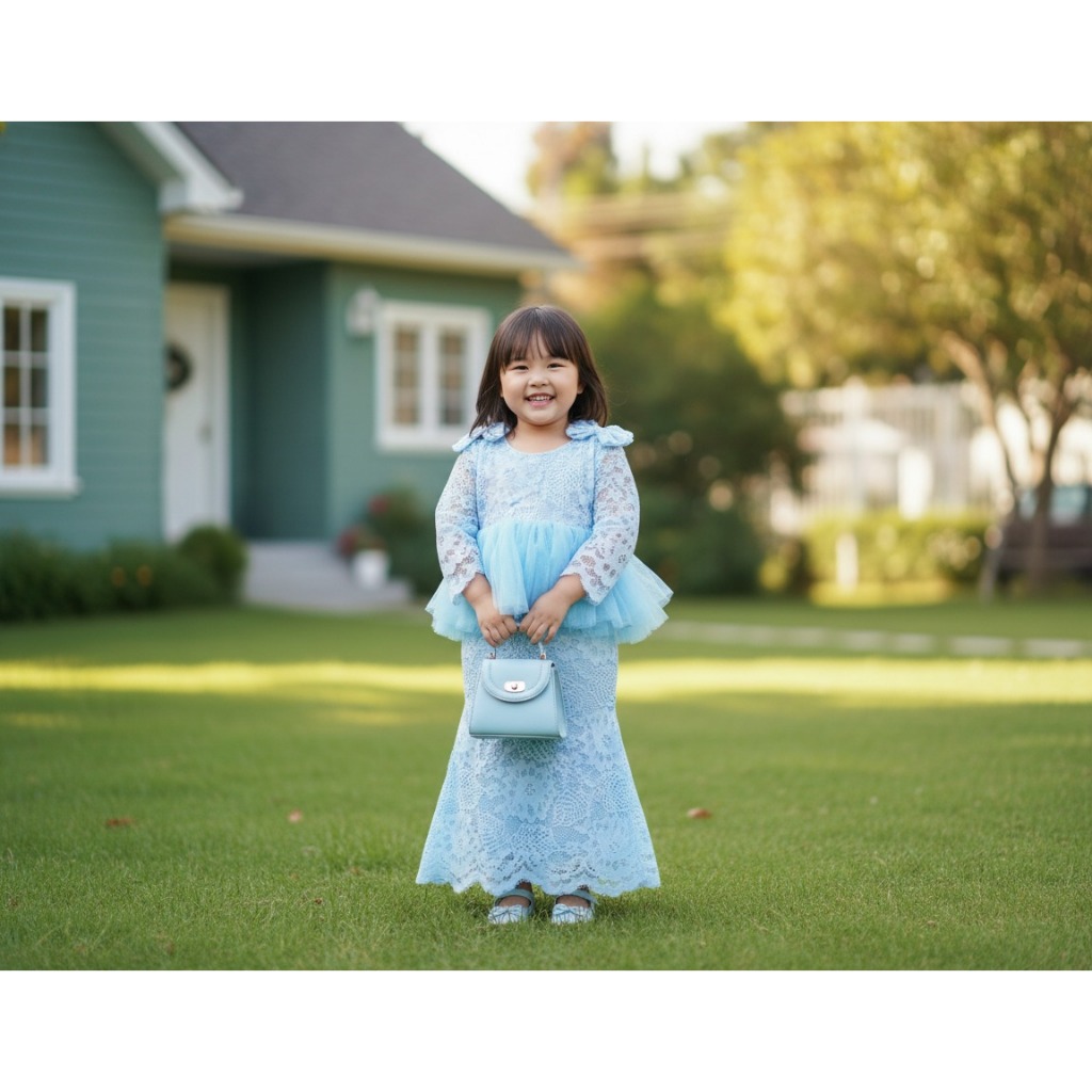 BAJUNIK KEBAYA PEPPLUM TULLE WARNA BIRU FROZEN USIA 0-2 TAHUN (READY STOK)