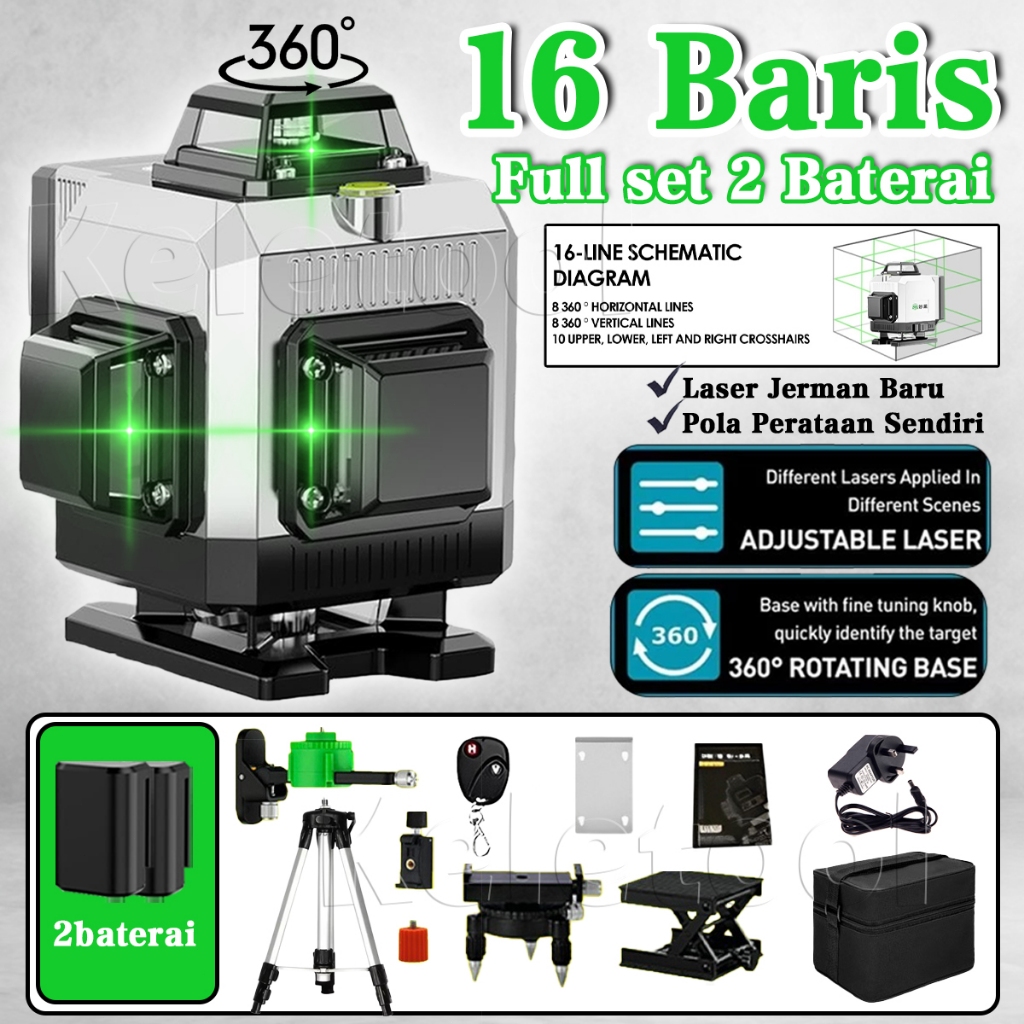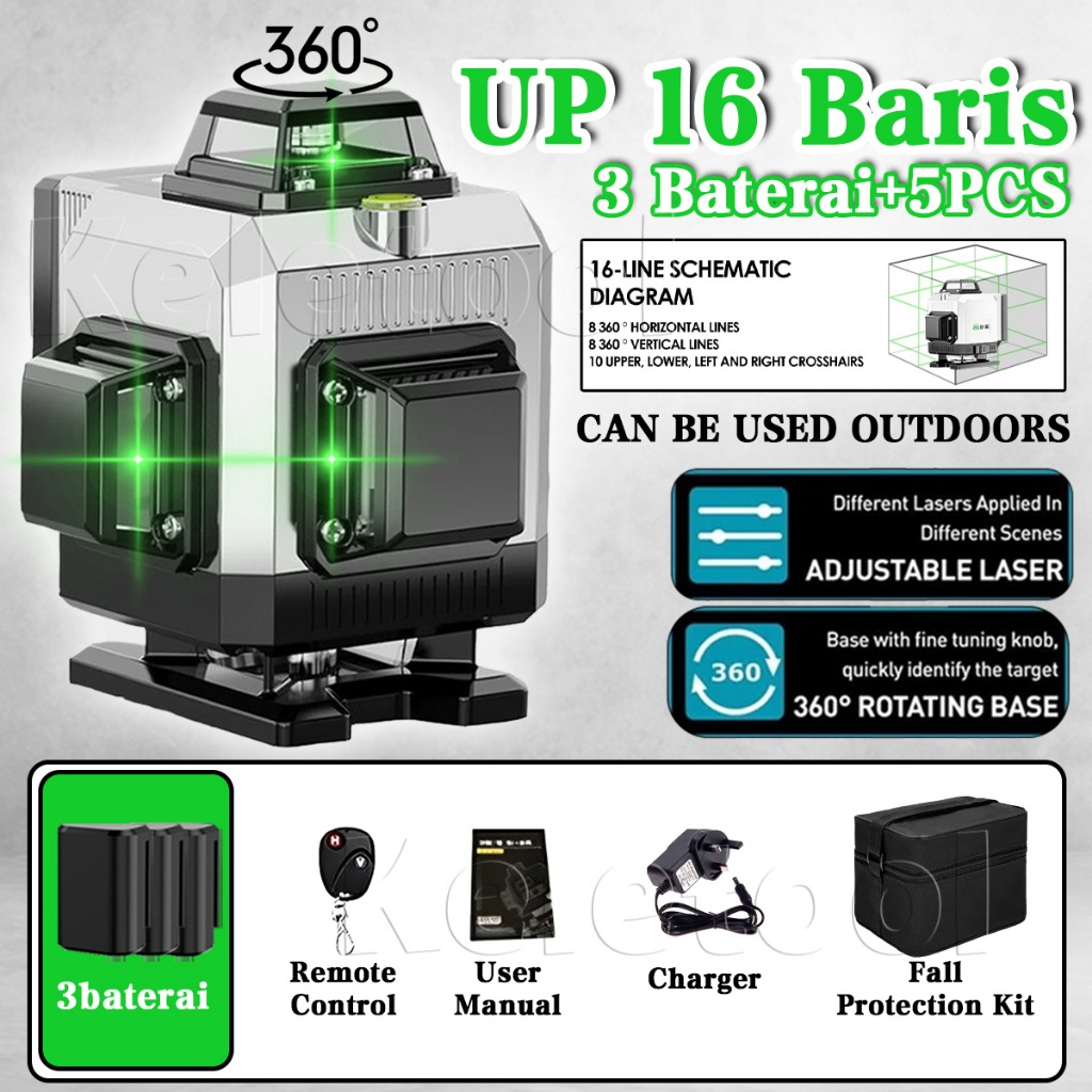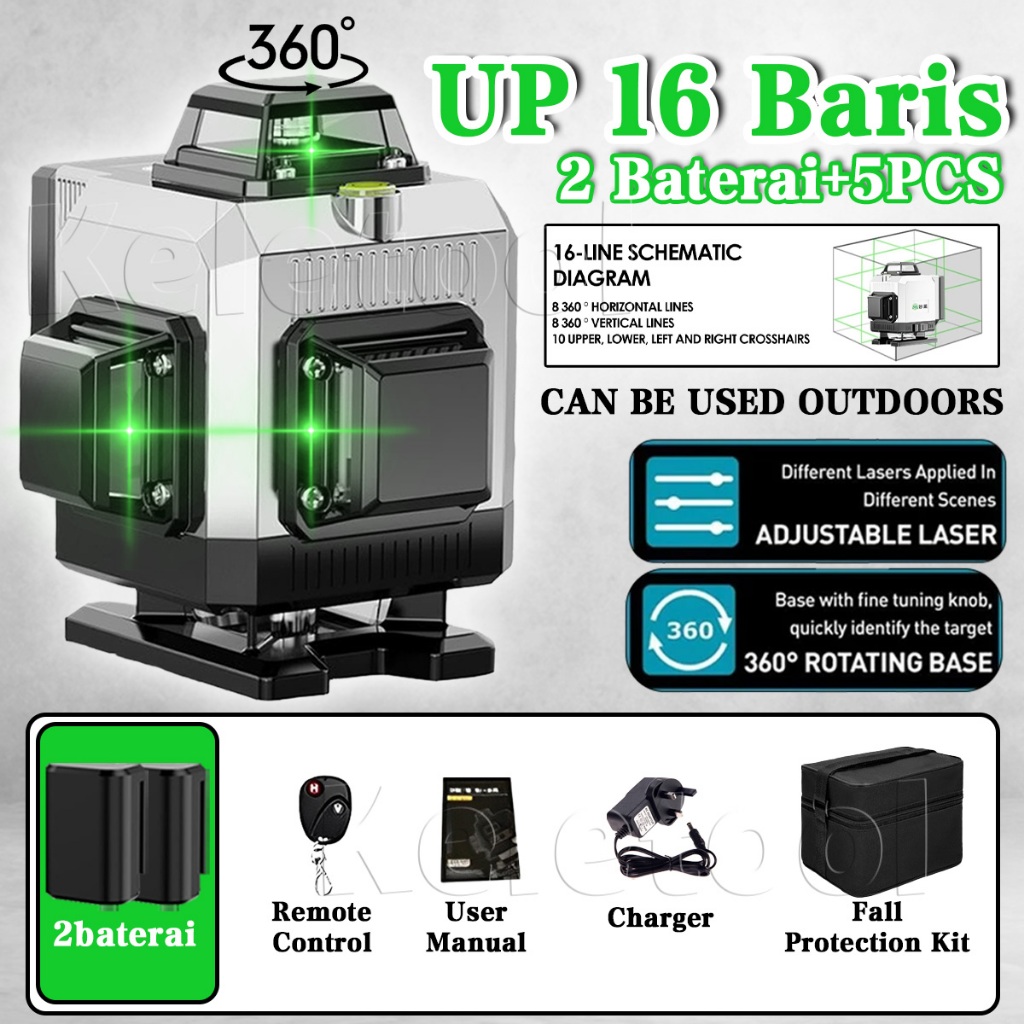 KELETOOL 4D 16 Line Laser Level Total Timbangan Laser Tukang Bangunan Meter Laser Digital Mesin Self Leveling Meteran Garis Laser Multifungsi Alat Level Laser High Precision Waterpass Laser Keramik Lantai Diy Laser Tukang Bangunan