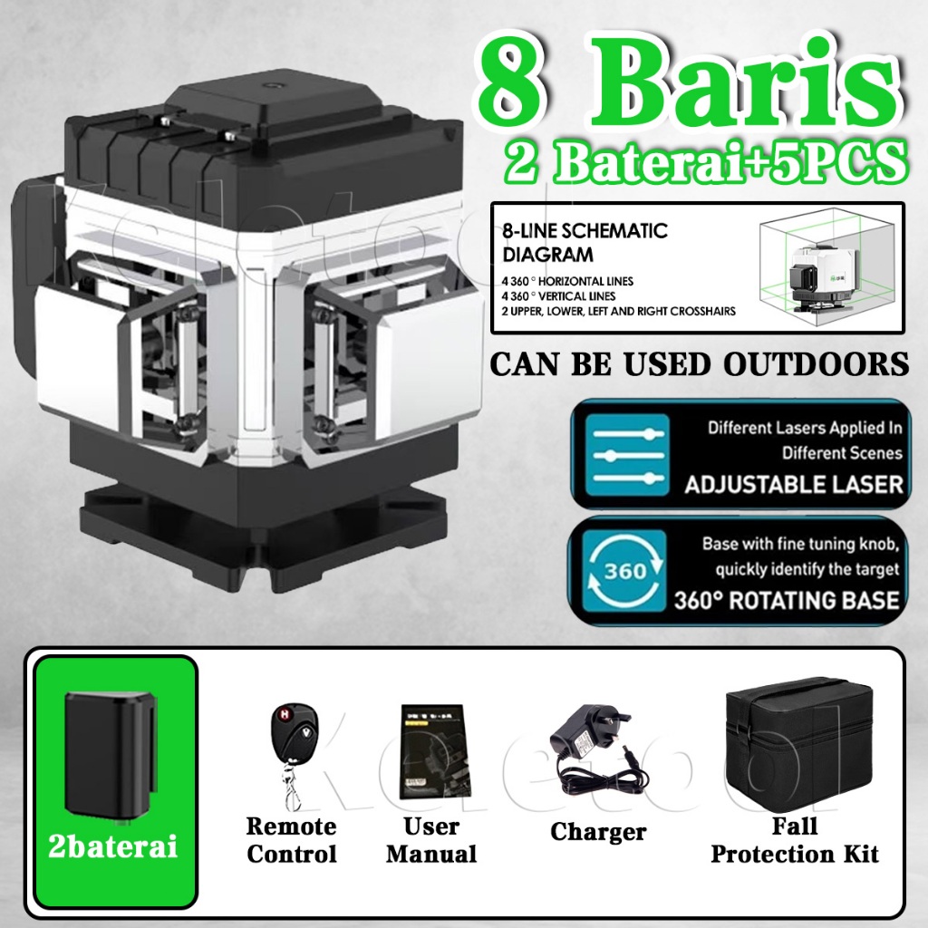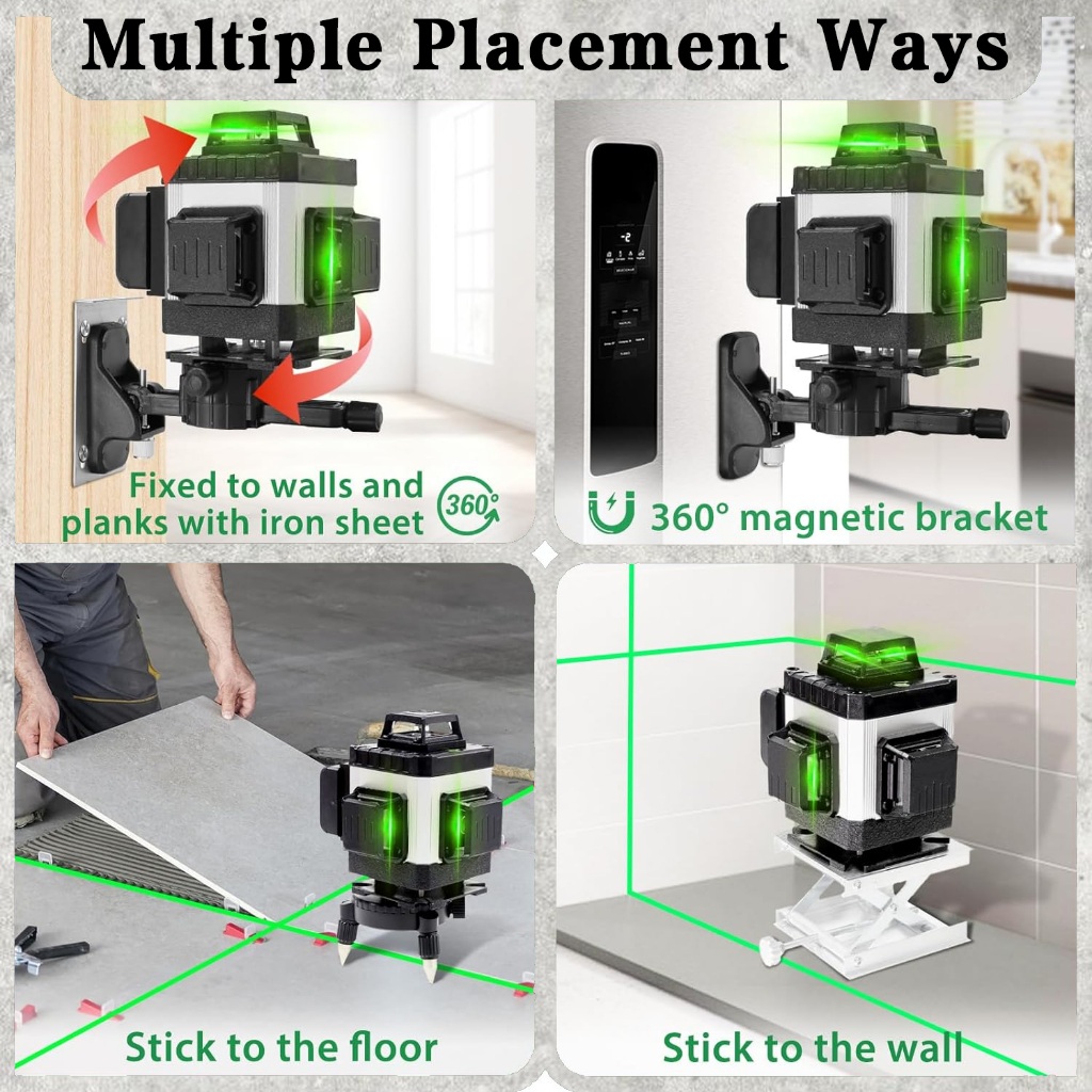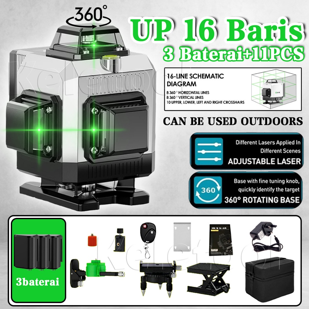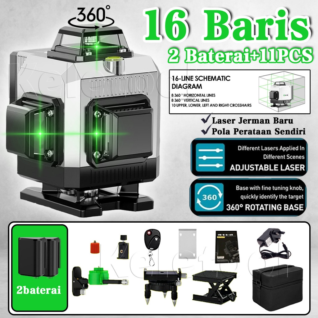 KELETOOL 4D 16 Line Laser Level Total Timbangan Laser Tukang Bangunan Meter Laser Digital Mesin Self Leveling Meteran Garis Laser Multifungsi Alat Level Laser High Precision Waterpass Laser Keramik Lantai Diy Laser Tukang Bangunan