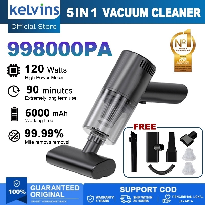 KELVINS Vacuum Cleaner Nirkabel Genggam 998000 Pa 5 IN 1 Penyedot Debu Portabel Daya Tinggi Rumah Tangga Pengisap Kuat Desktop Mini Mobil Desktop Cleanup