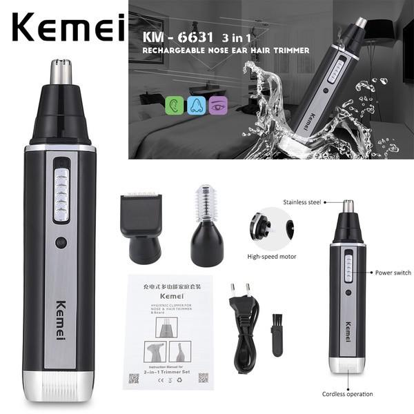 Kemei Alat Cukur Km-6631 Mesin Pencukur Kumis Jenggot Dan Bulu Hidung Sistem Cas