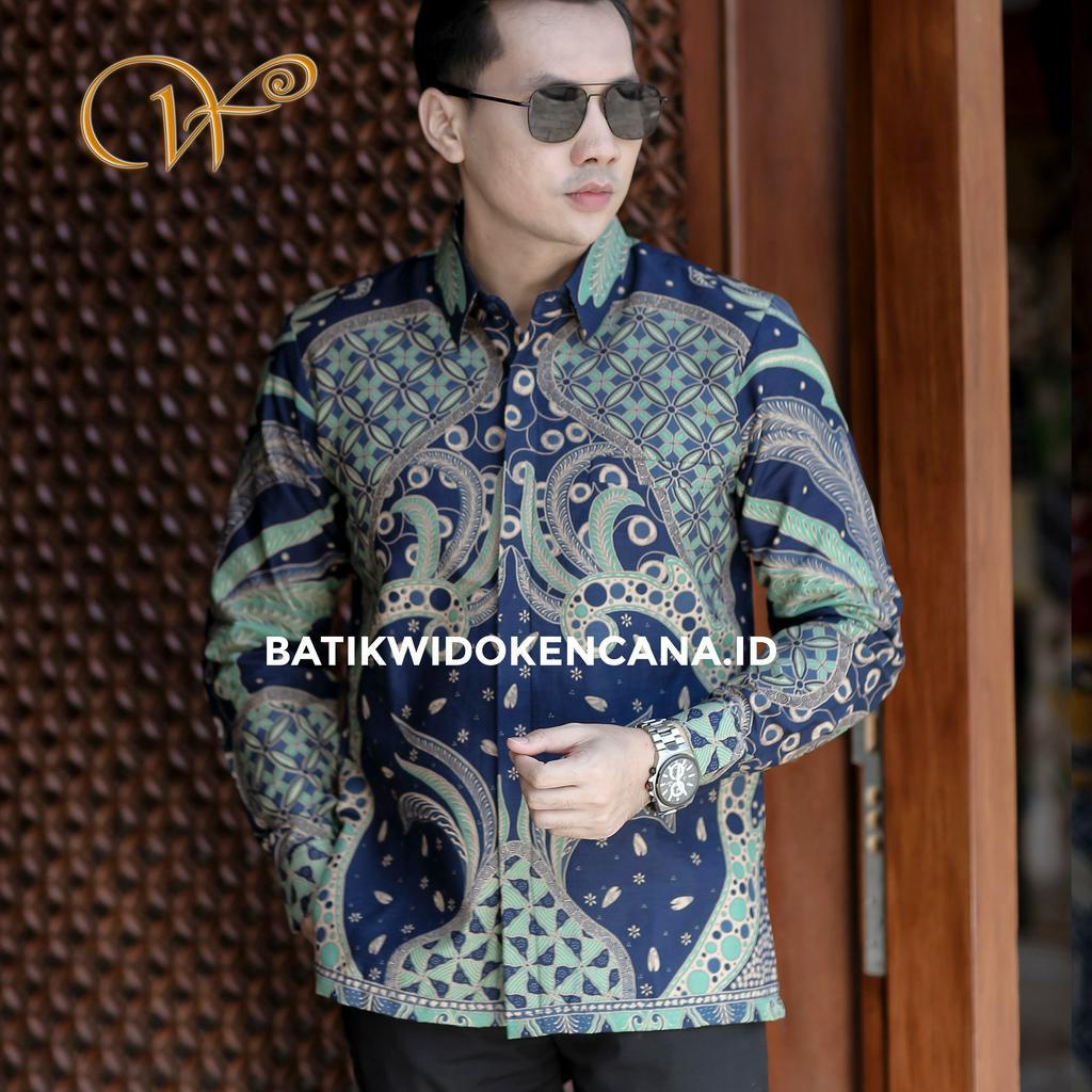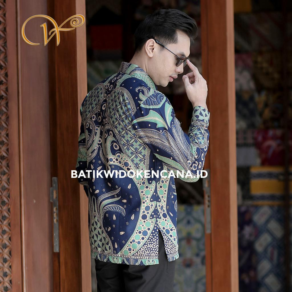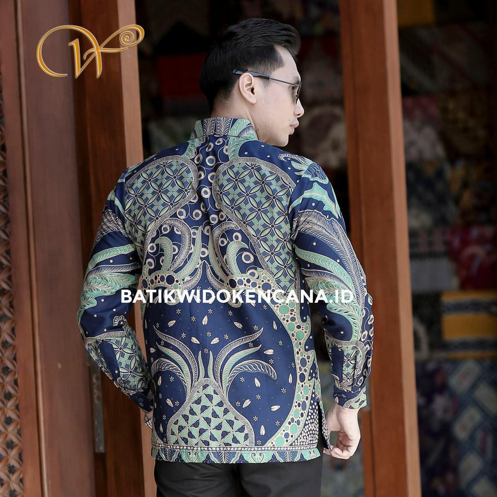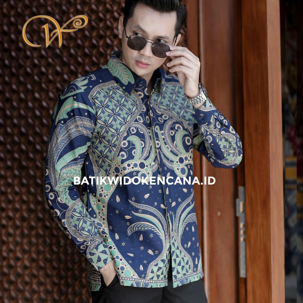 KEMEJA BATIK KANTOR MOTIF RAHARJA - BATIK HANDPRINT MOTIF MODERN & BERKUALITAS - WARNA KOMBINASI NAVY DAN HIJAU SAGE - KEMEJA BATIK LAPIS TRIKOT PREMIUM - KEMEJA BATIK SLIM FIT/REGULER BISA CUSTOM UKURAN