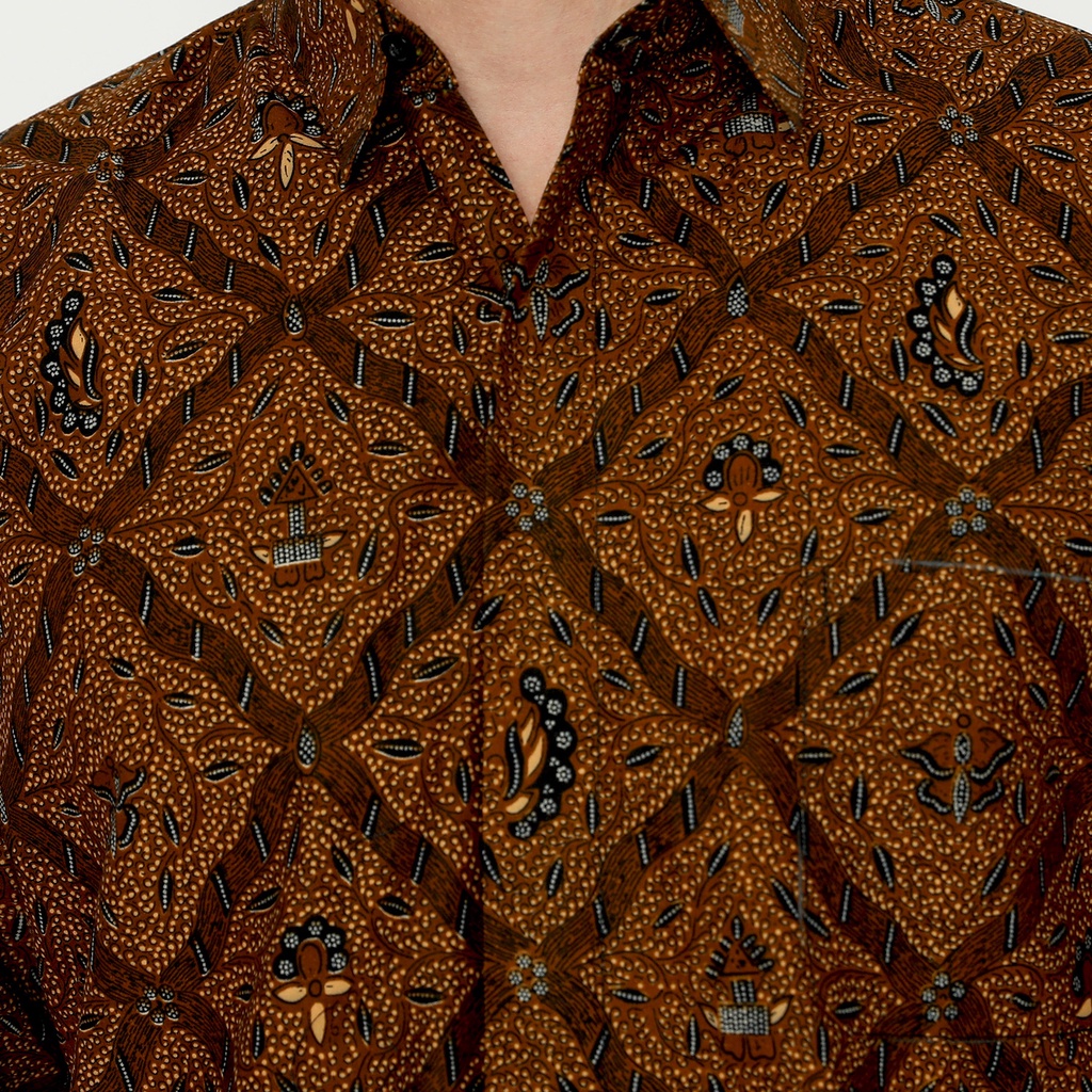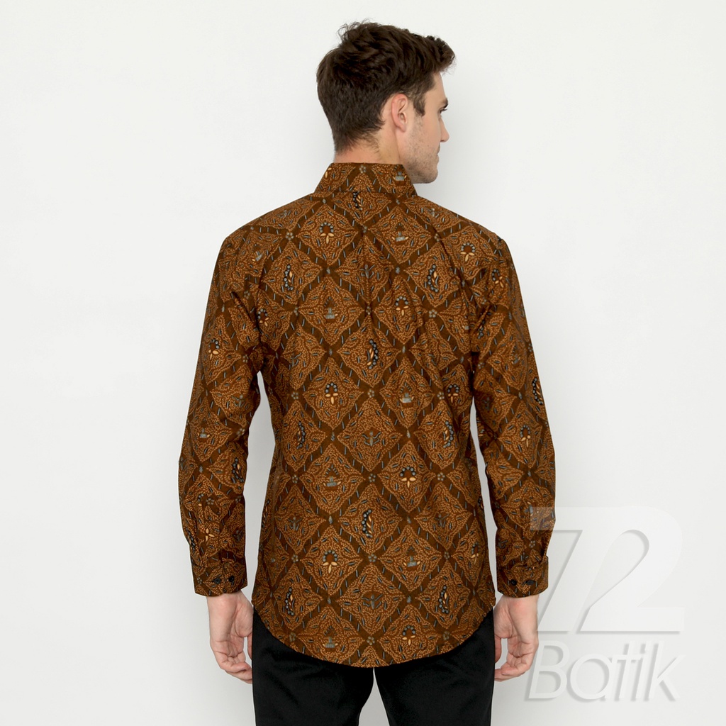 KEMEJA BATIK PRIA Slimfit Lengan Panjang Premium Motif Sidomukti Sogan Klasik Tradisional Jarik Coklat Earthy Brown Kuning Gading 724251 Cap 72