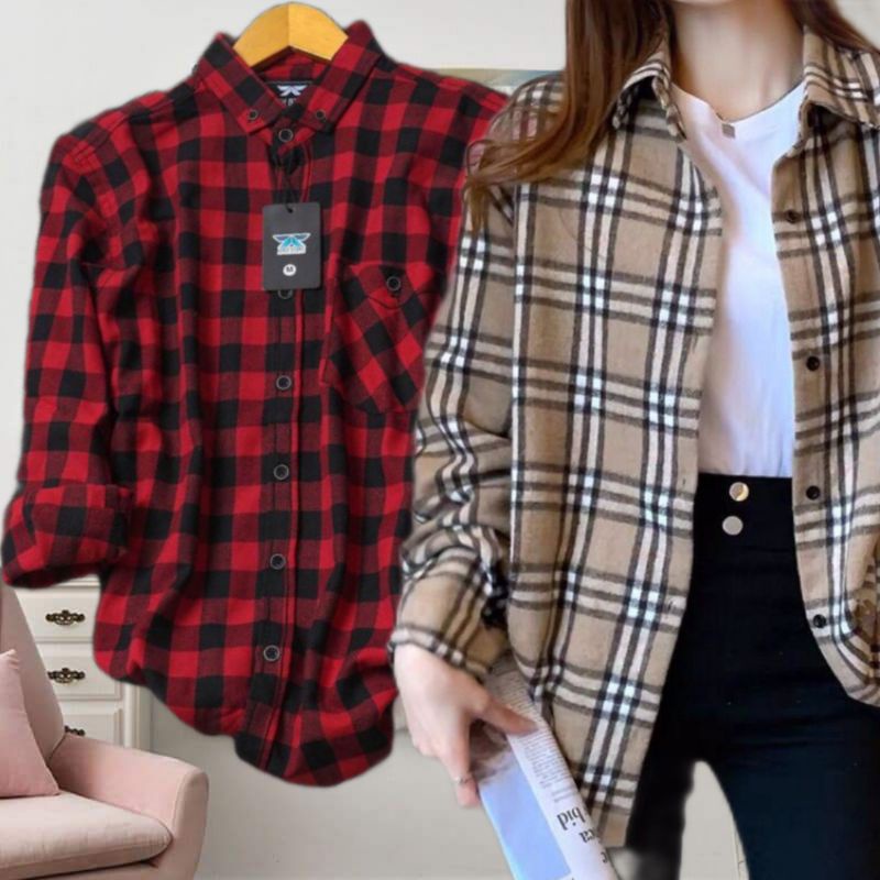 KEMEJA FLANEL MERAH PRIA &WANITA LENGAN PANJANG