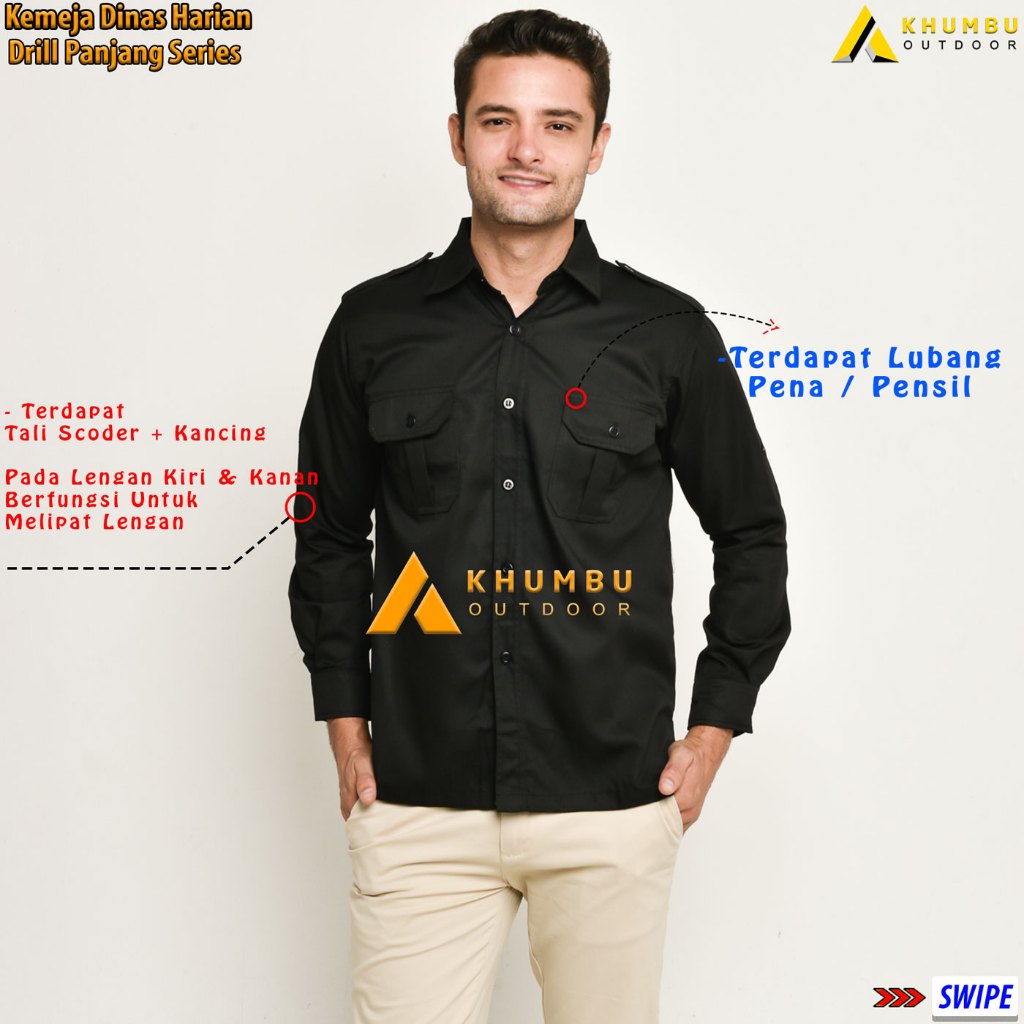 Kemeja Kerja PDH Drill Panjang Series Warna ABU-ABU | Kemeja Dinas Harian PNS/ASN