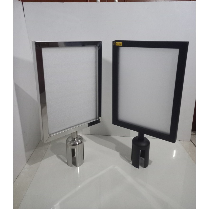 KENSI Sign Board FRAME A4 Potrait berdiri Signage stainless Hitam tiang papan tiang antrian