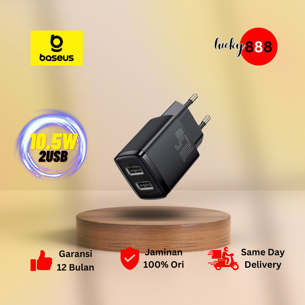 KEPALA CHARGER BASEUS MINI DUAL PORT USB CHARGER 10.5W COMPACT ADAPTOR