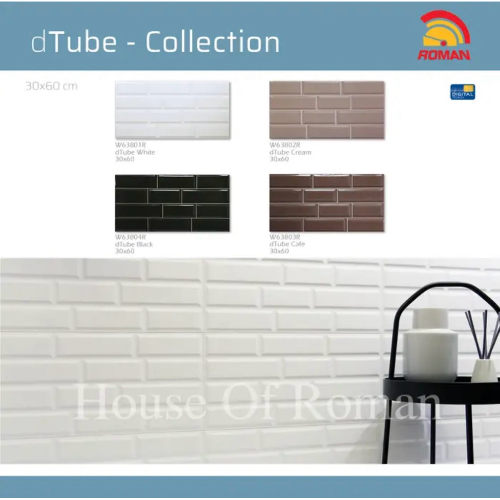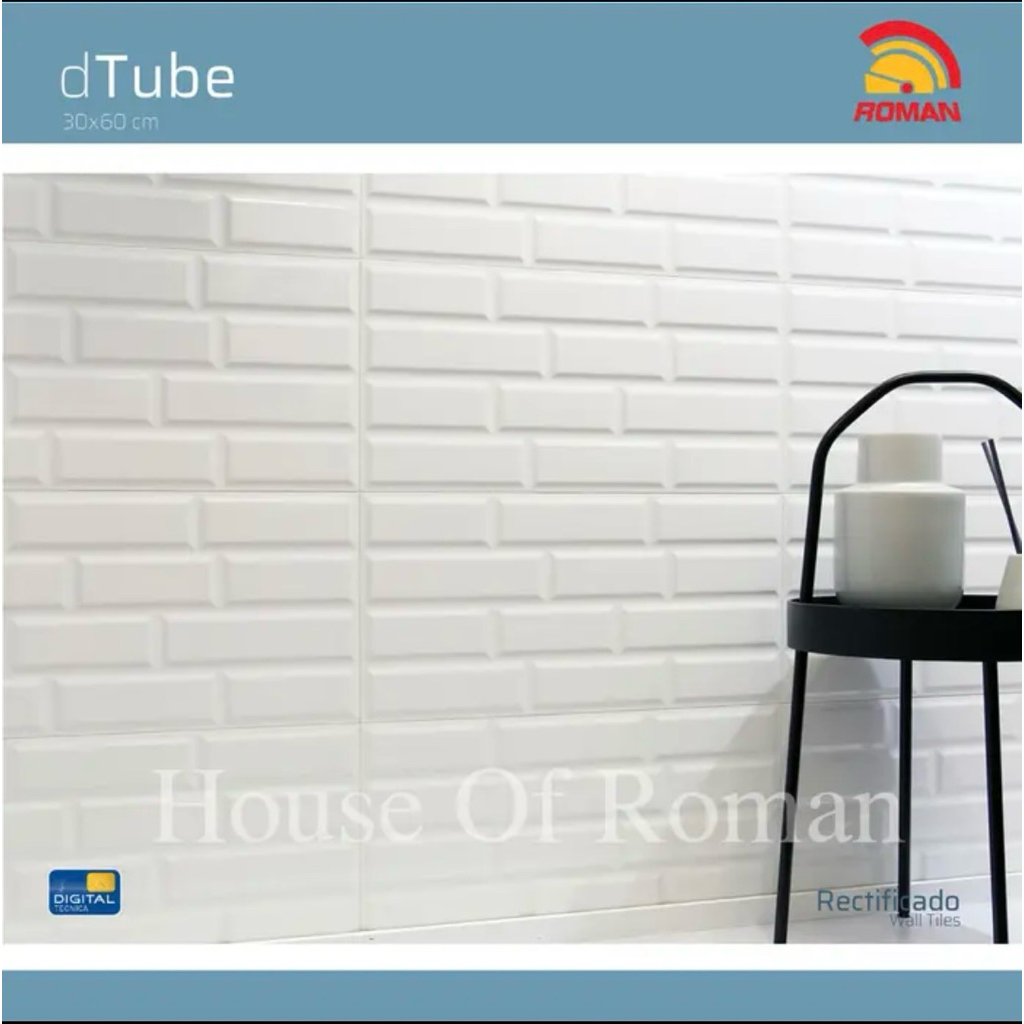 Keramik Kamar Mandi dTube White/Keramik Dinding Dapur/Keramik 30x60 Motif Bata Glossy/Keramik Bata Putih/Keramik Bata Roman