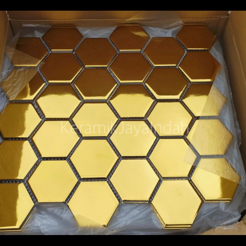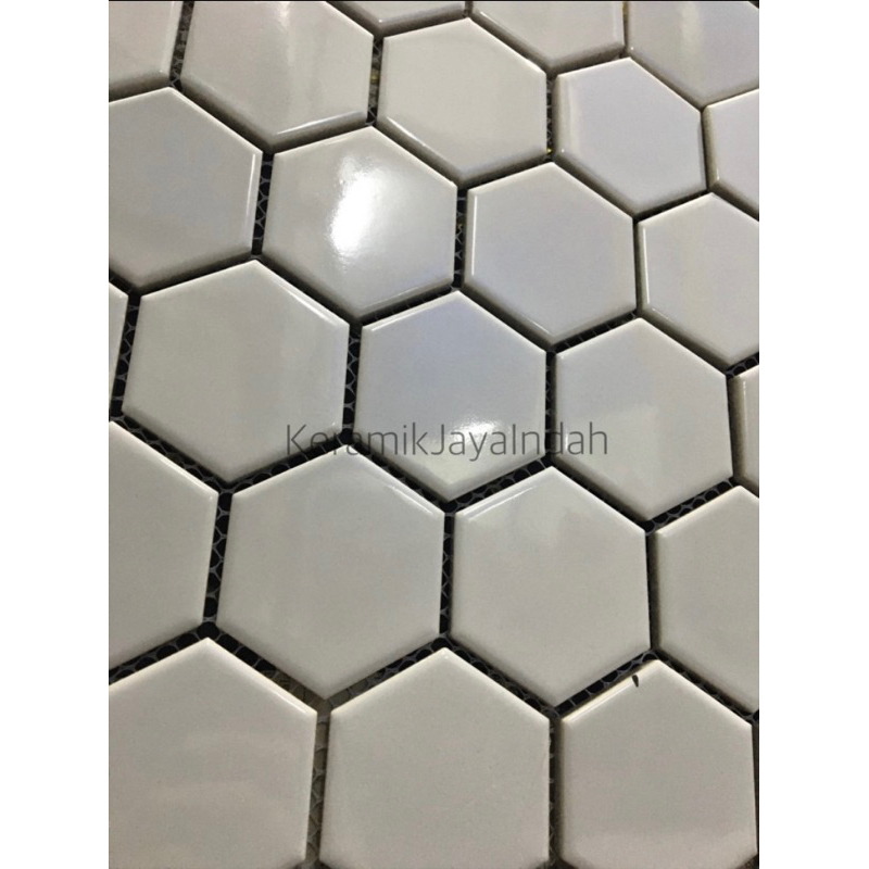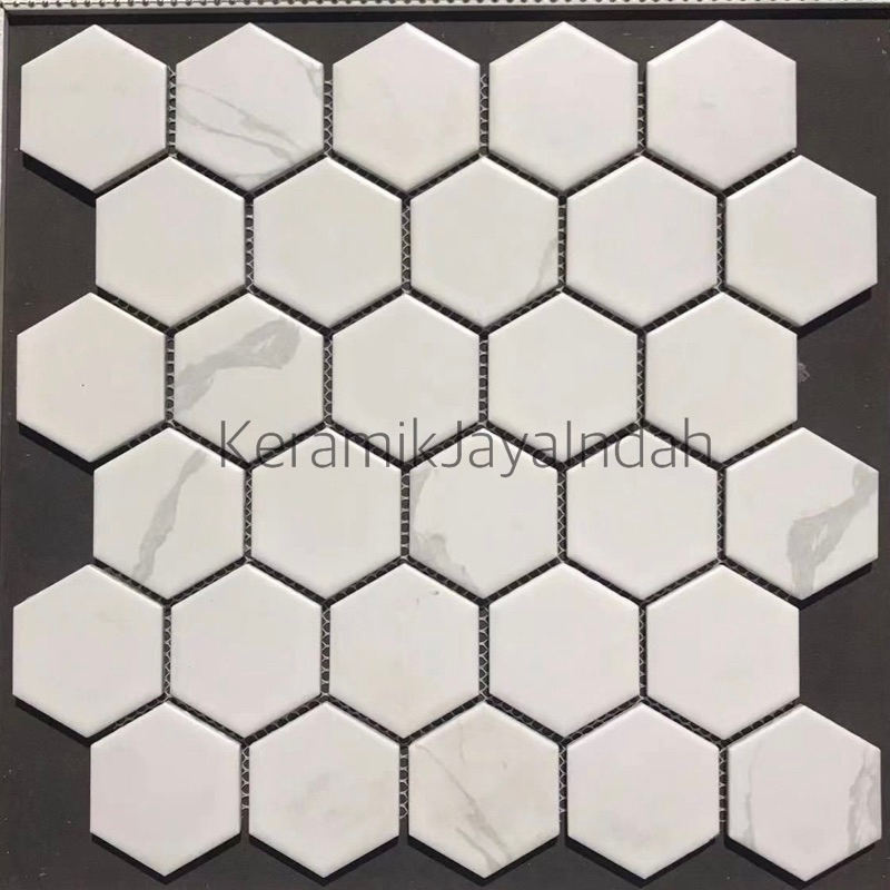 KERAMIK MOZAIK MOZAIC MOSAIK MOSAIC TILES HEXAGONAL SEGI ENAM 5 CM KITCHEN PANTRY KAMAR MANDI BAKCSPLASH PUTIH HITAM EMAS ABU TERASO TERAZO TERRASO TERRAZO SINGRES SIN GRES