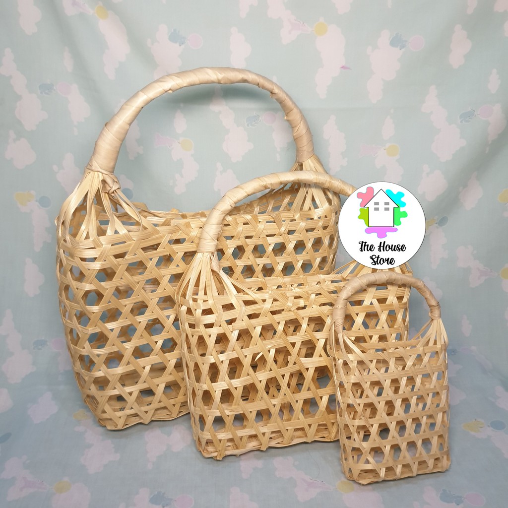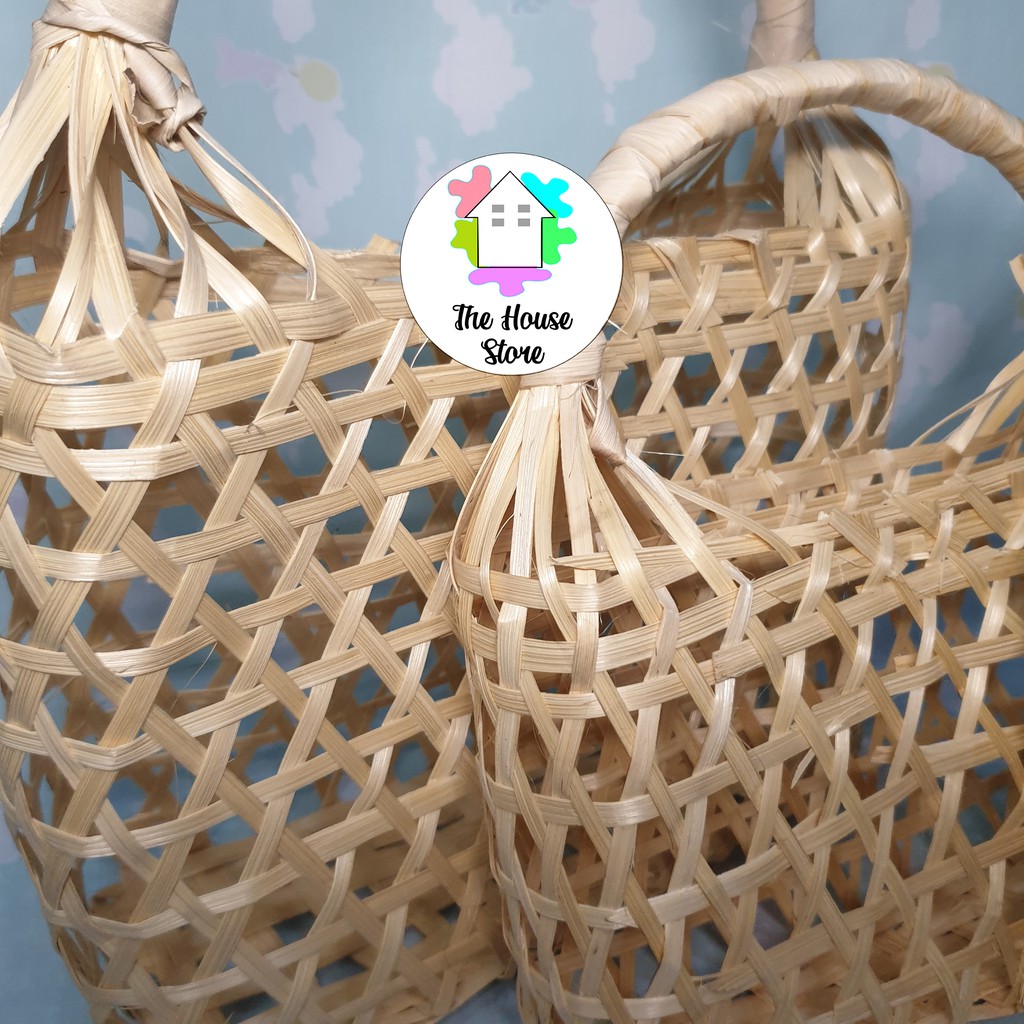 KERANJANG SNACK DARI ANYAMAN / JINJINGAN BAMBU / TAS ANYAM BAMBU SEDANG