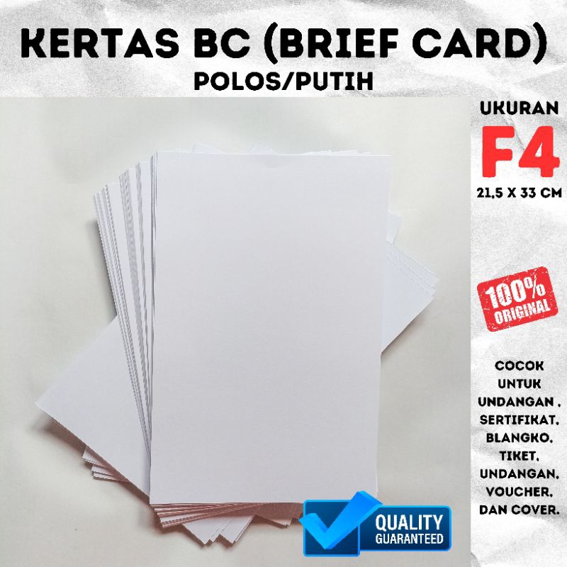 KERTAS BC/KERTAS TIK/ KERTAS BC (BRIEF CARD) UKURAN F4 160 gsm, KERTAS PIAGAM, KERTAS SERTIFIKAT, BLANGKO, COVER, KERTAS GANBAR5 DLL