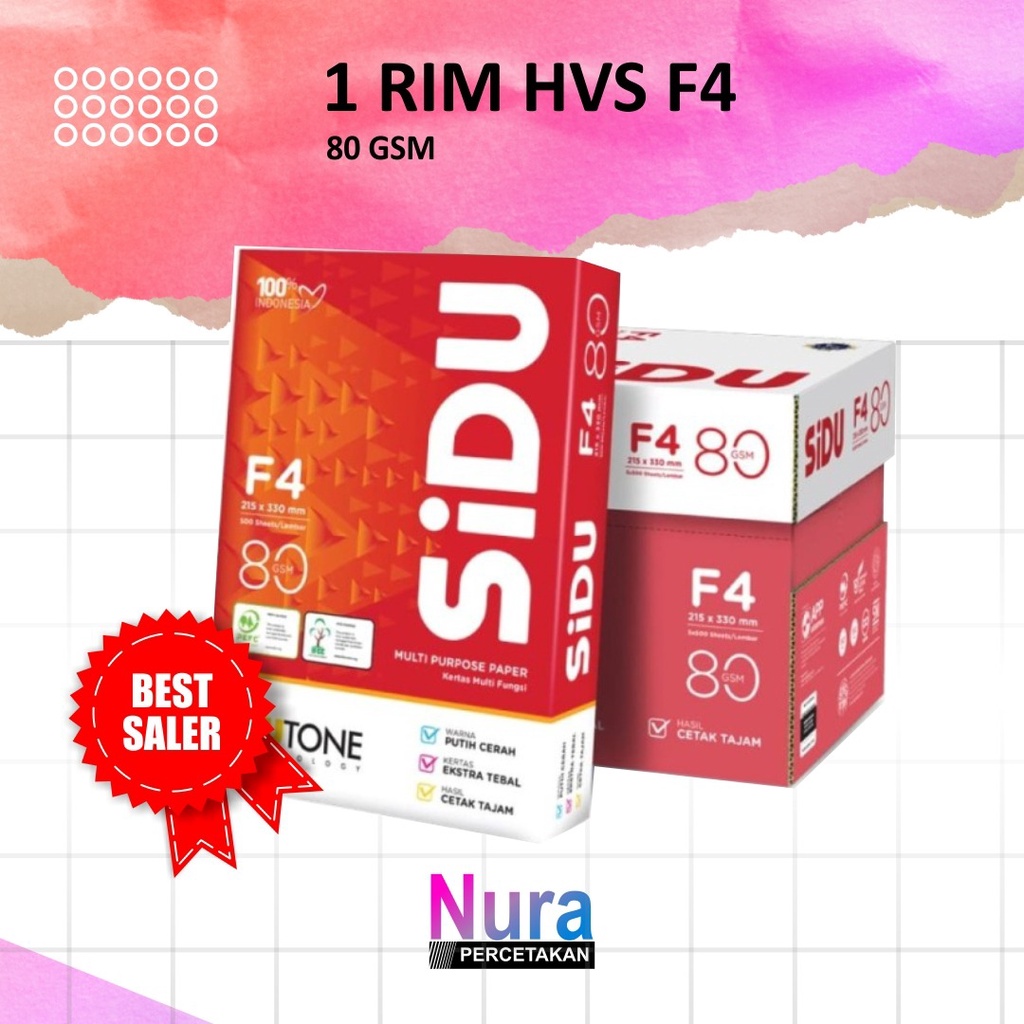 KERTAS HVS F4 SIDU / Kertas Fotocopy 80 GSM F4 /75 GSM F4 / 70 GSM F4