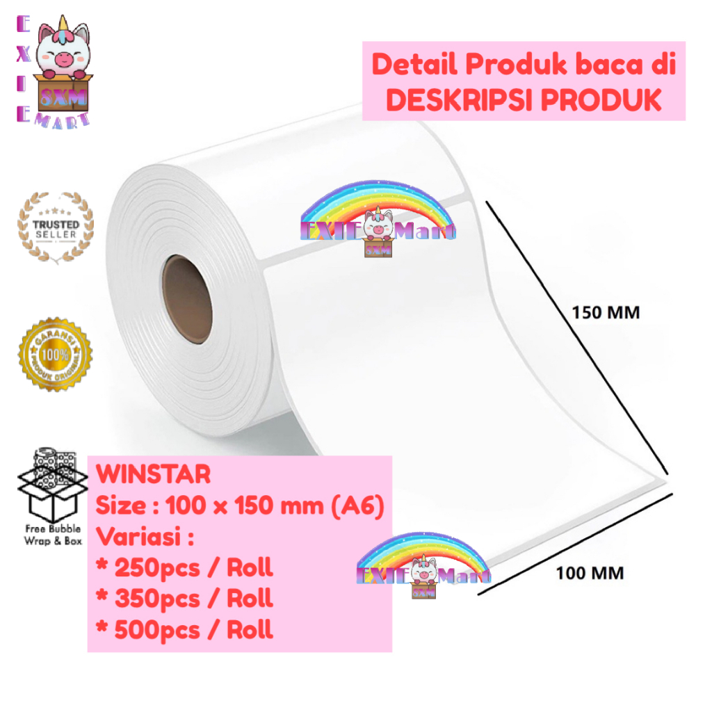 KERTAS LABEL THERMAL RESI ROLL 100X150 mm LABEL STICKER BARCODE UKURAN A6 ISI 250 PCS, 350 PCS, 500 PCS