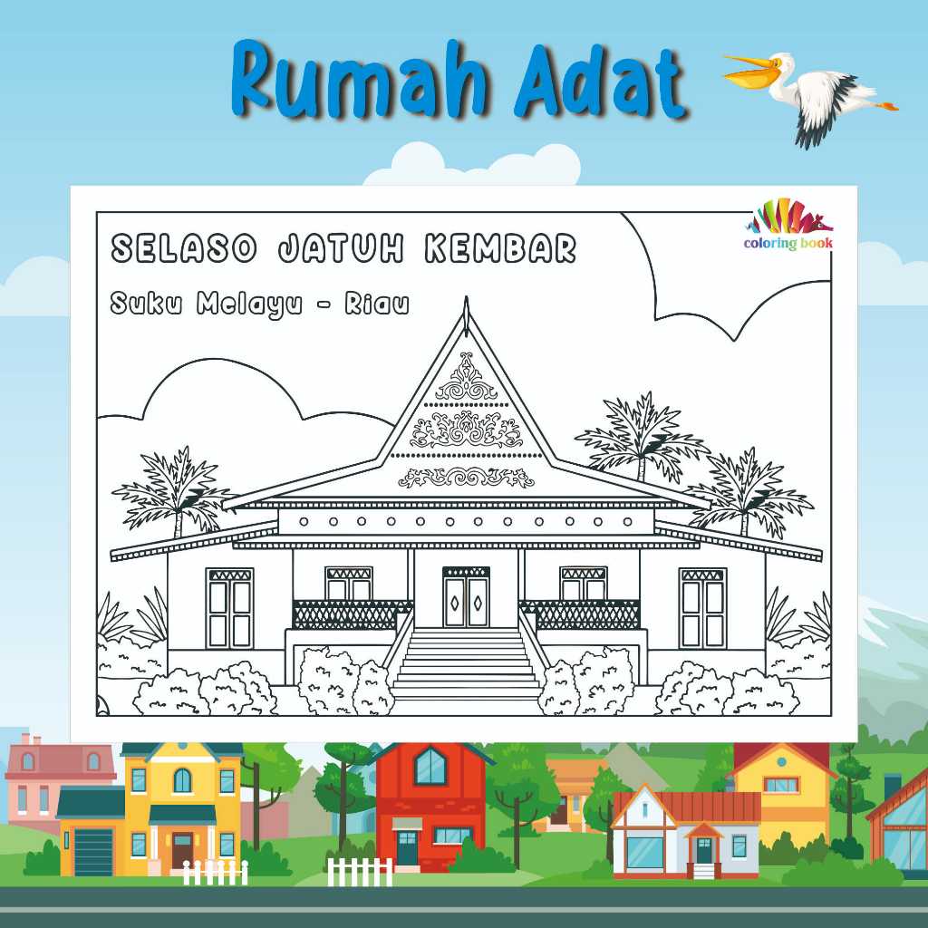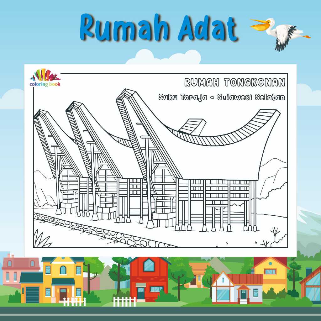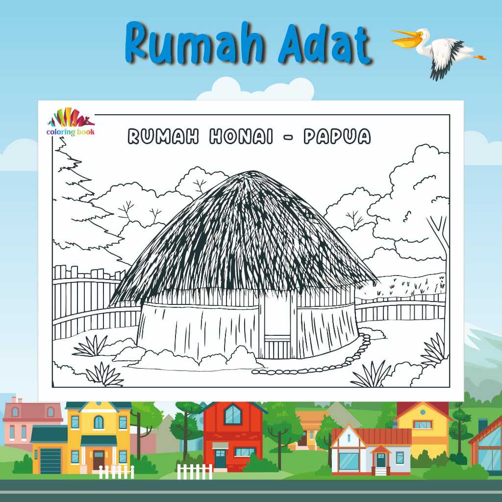 KERTAS MEWARNAI / COLORING / KERTAS GAMBAR / RUMAH ADAT / KERTAS MEWARNAI ANAK PAUD TK SD / A4 - A5
