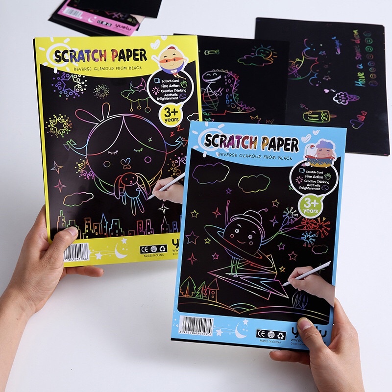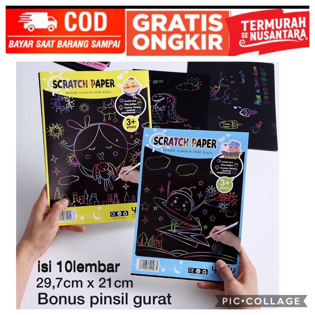 KERTAS SCRATCH ISI 10LEMBAR BONUS PINSIL GURAT Kertas lukis ukuran A4