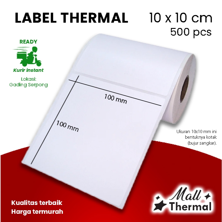 KERTAS STICKER THERMAL 100x100 ISI 500 LEMBAR / LABEL THERMAL / STICKER LABEL THERMAL RESI 500 LEMBAR