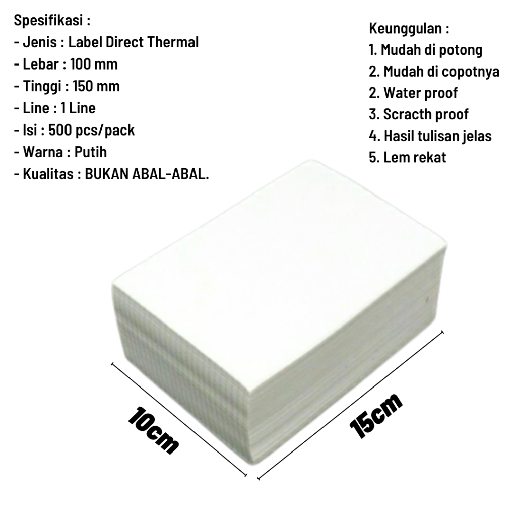 KERTAS THERMAL 100 X150 500 LEMBAR LIPAT STIKER RESI BARCODE A6