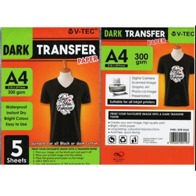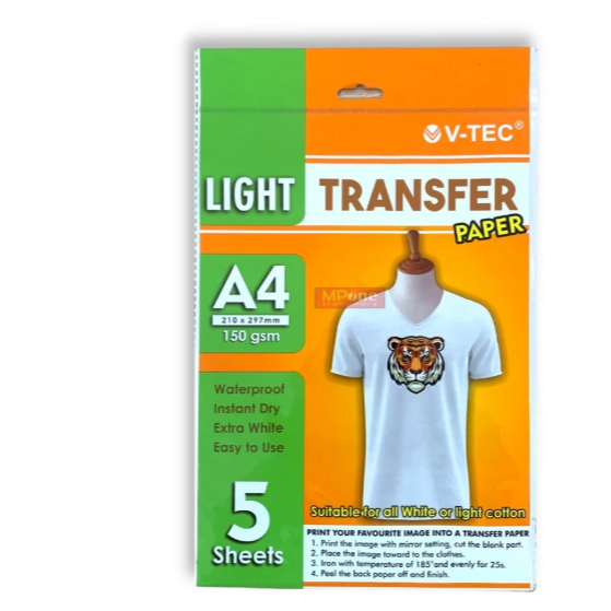 KERTAS TRANSFER PAPER V-TEC A4 LIGHT/DARK / KERTAS PRINT/KERTAS SABLON
