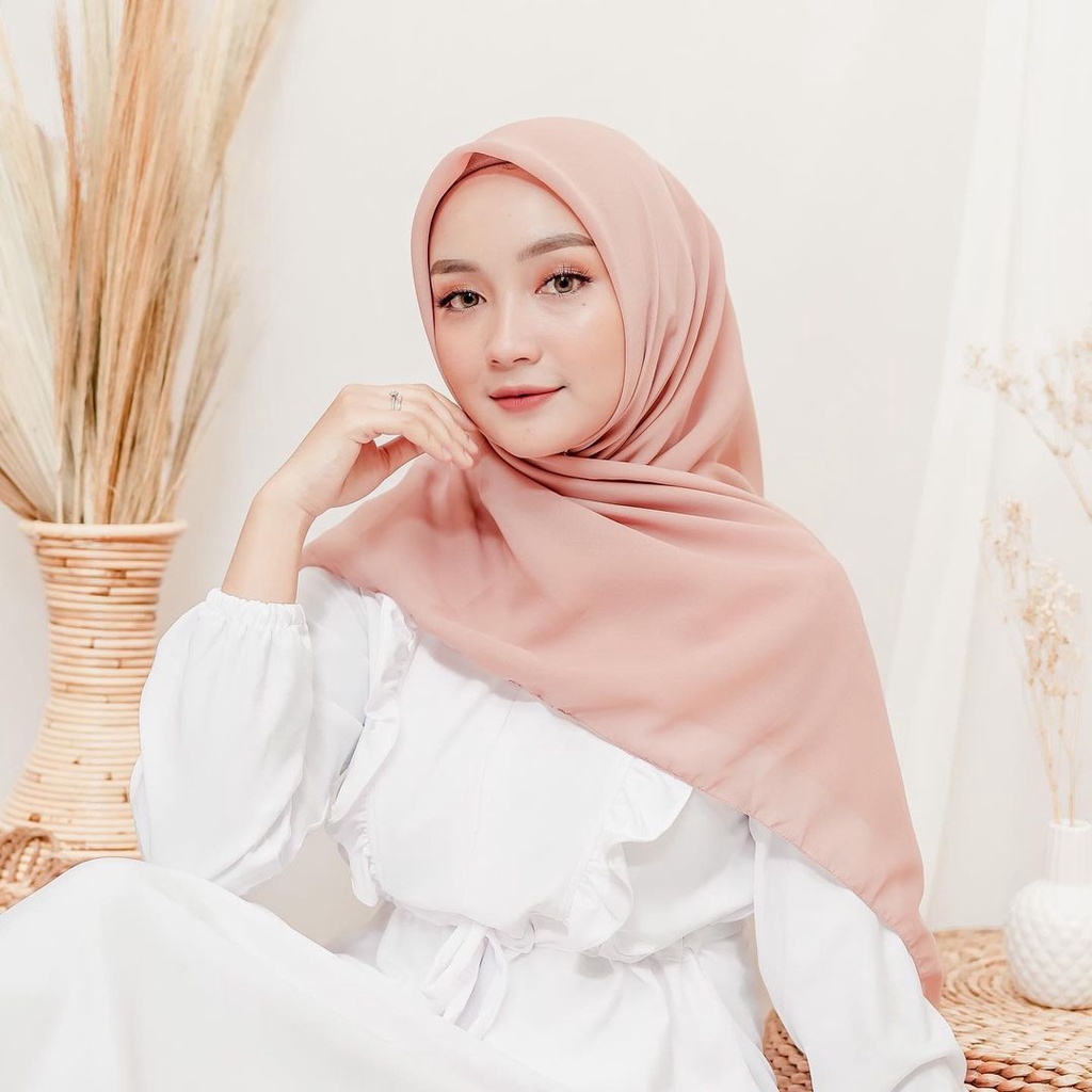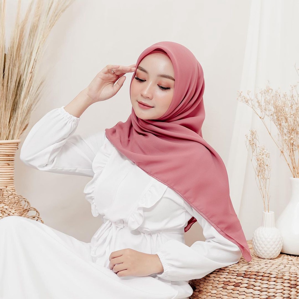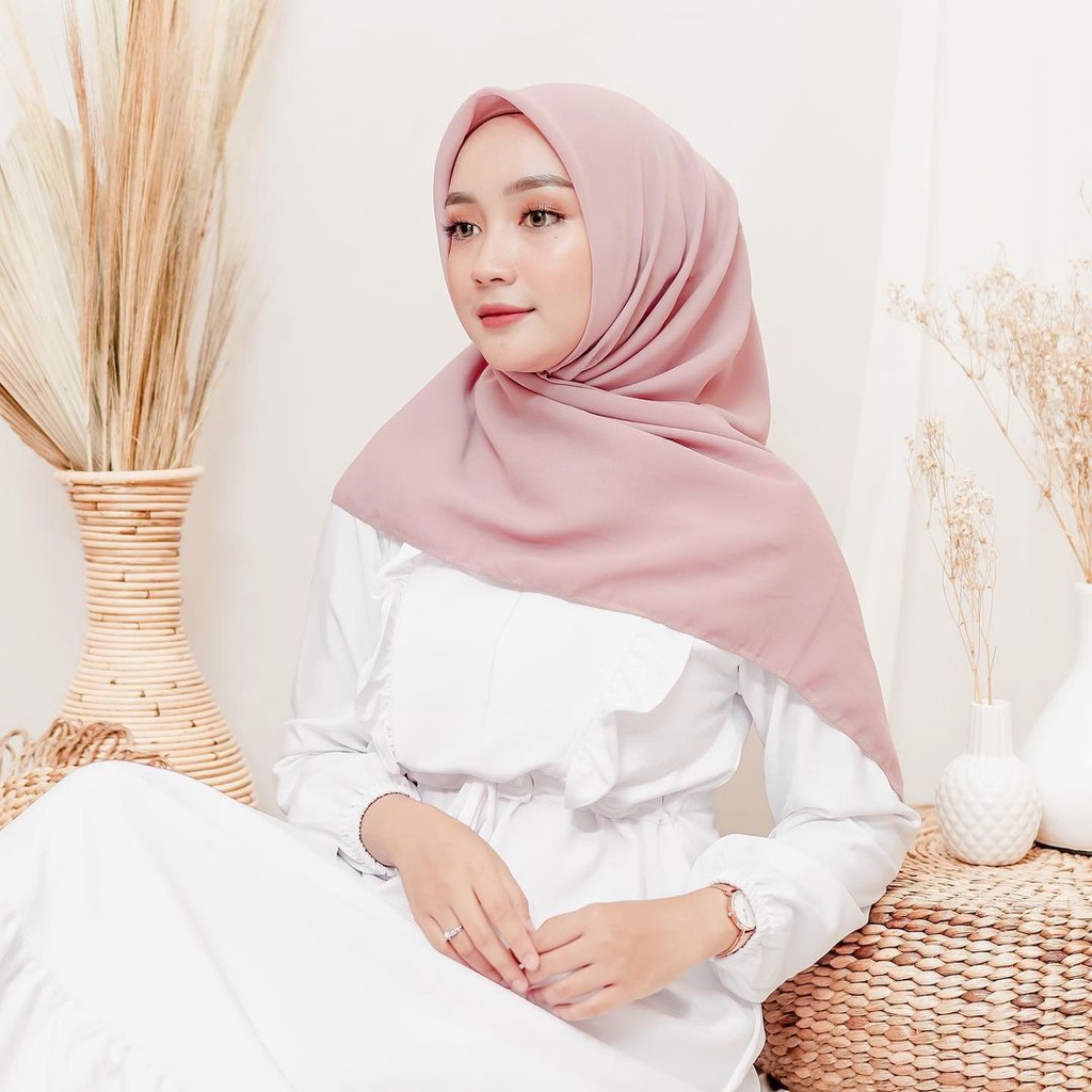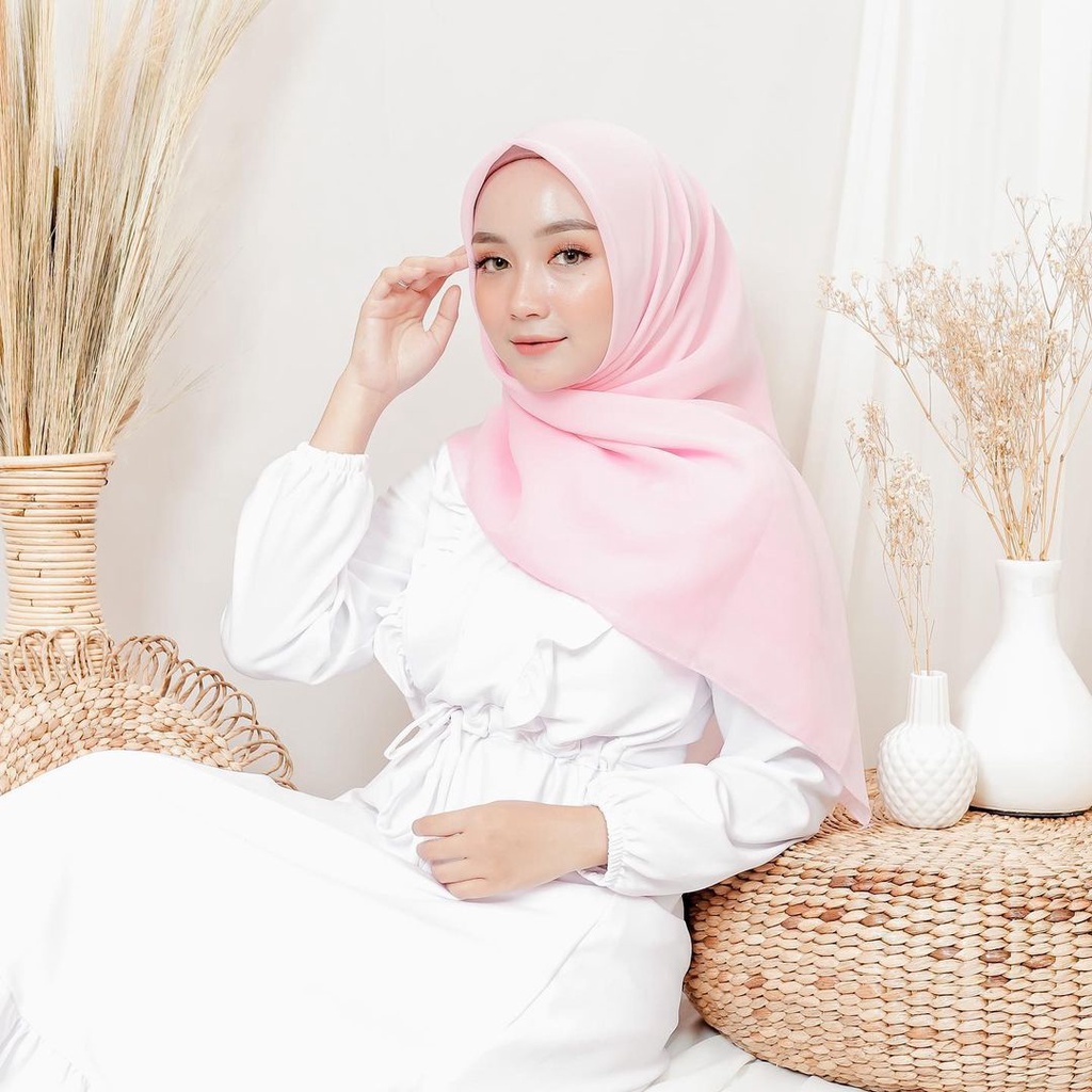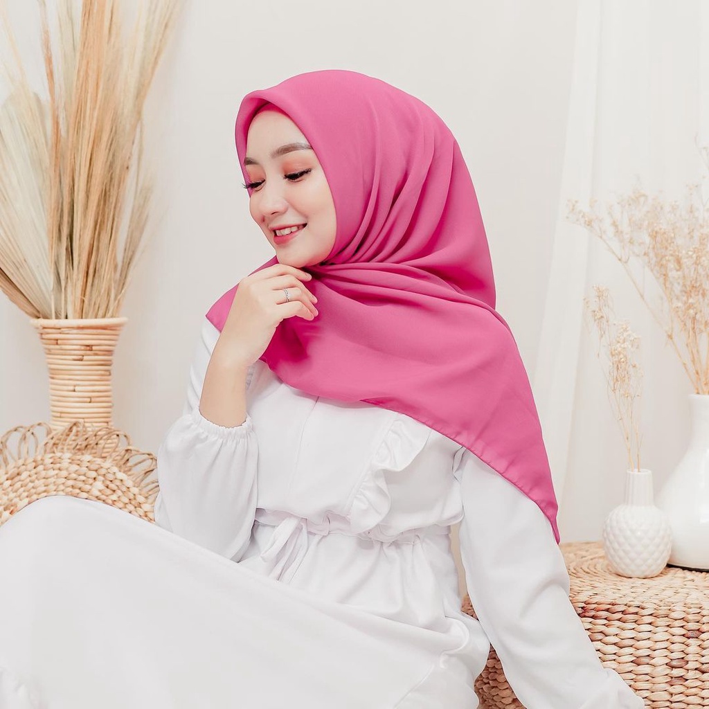 KERUDUNG HIJAB SEGI EMPAT POLOS WARNA PINK MERAH MUDA