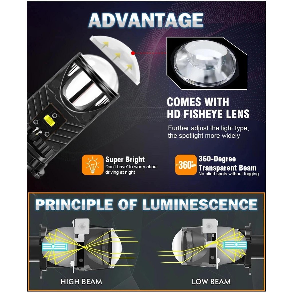 KEVANLY Y6 Lensa Proyektor LED H4 Lampu Depan Mobil Lampu Depan LED Canbus 6000K Bohlam Lampu Sorot Tinggi/Rendah dengan Kipas Turbo 22000LM 90W untuk Mobil/Motor 12V