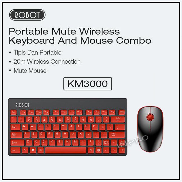 KEYBOARD MOUSE ROBOT KM3000 PORTABLE MINI WIRELESS BLACK PINK
