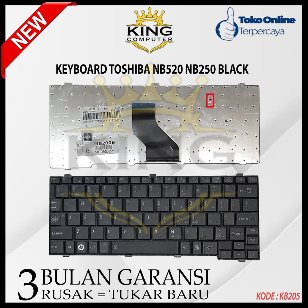 KEYBOARD TOSHIBA NB200 NB201 NB205 NB250 NB300 NB305 NB500 NB505 NB510 NB520 T110 T115 HITAM