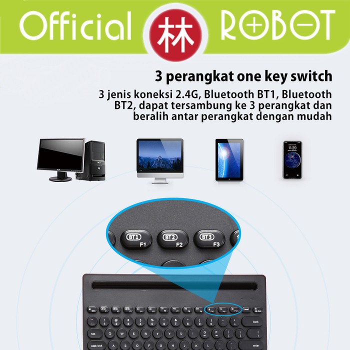 KEYBOARD WIRELESS ROBOT KB10 MULTI-DEVICE BLUETOOTH & 2.4G WIRELESS KEYBOARD 3 MODE