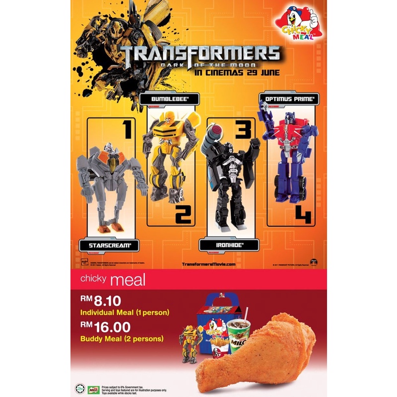 KFC Meal - Transformers Dark of The Moon - Complete set (2011)