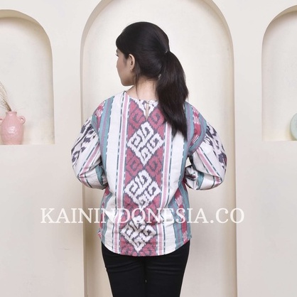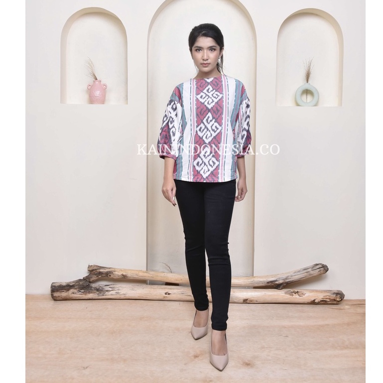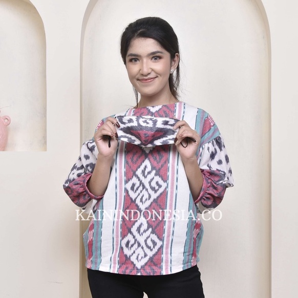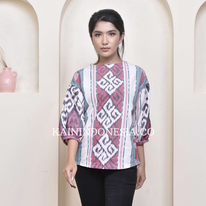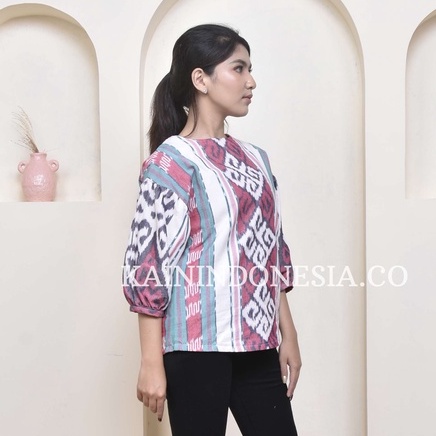 Blouse Hanna Top Tenun Jepara Pastel Lengan Puff Liora Pink