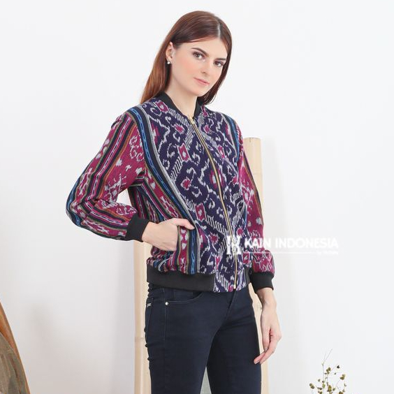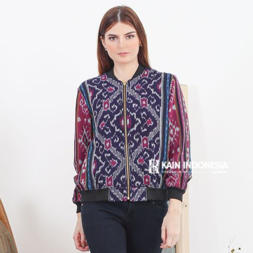 Jaket Bomber Tenun Wanita Rachel Kinara Ungu