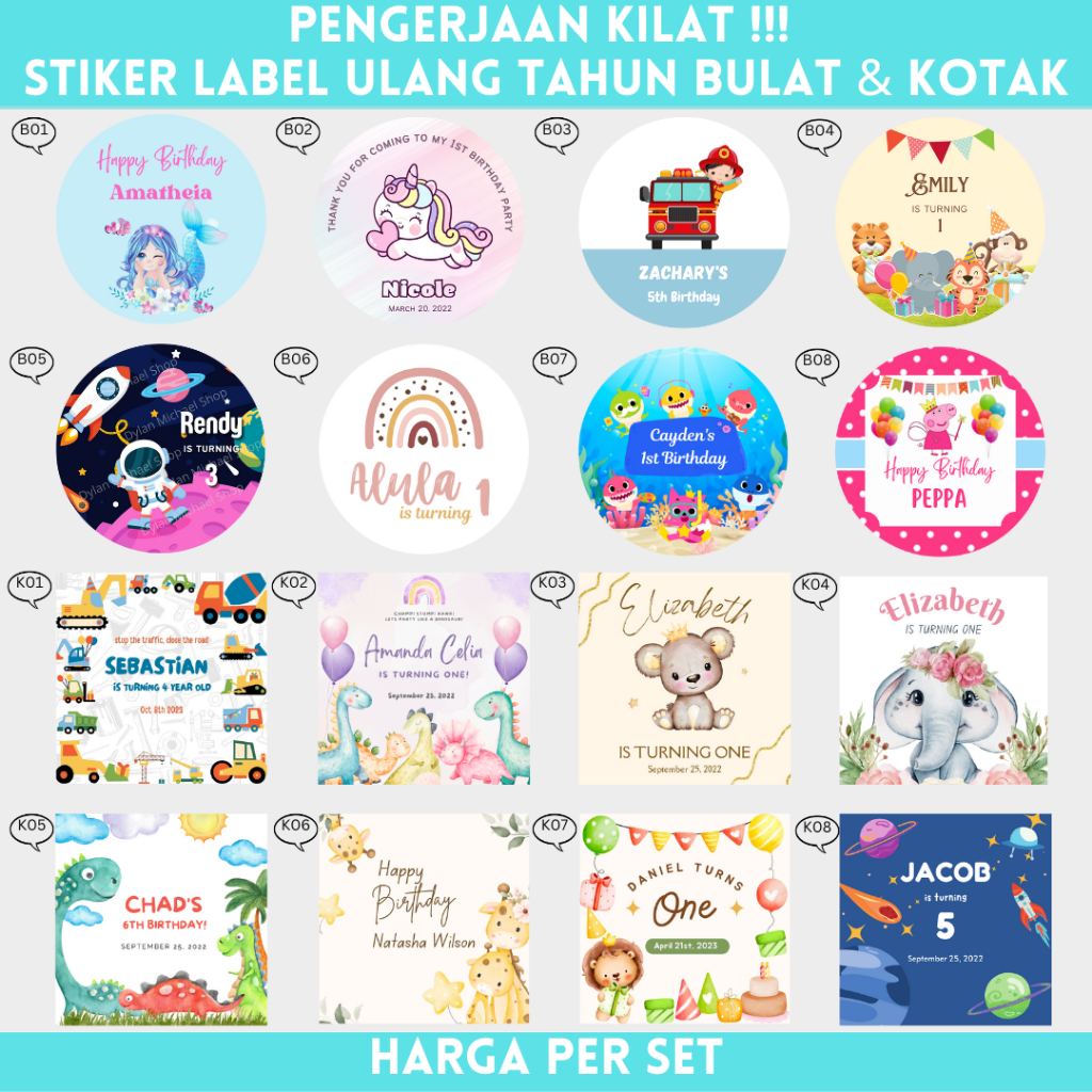 KILAT Pengerjaan Cepat Stiker Ulang Tahun Custom Birthday Sticker Stiker Custom Bento Label Hampers Stoples Goody Bag