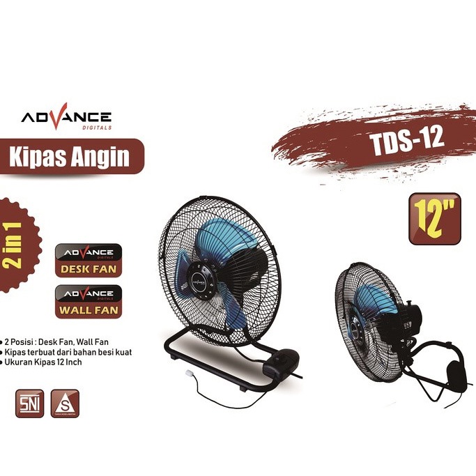 KIPAS ANGIN 2 IN 1 12 INCH ADVANCE/ KIPAS ANGIN DINDING/DUDUK WALL FAN DESK FAN ADVANCE 12 INCH TDS12