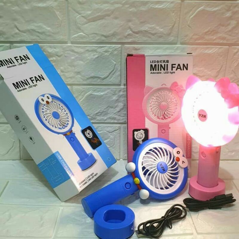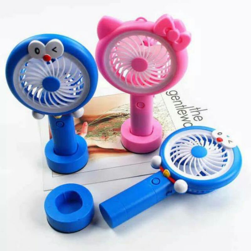 KIPAS ANGIN DORAEMON HELLOKITTY / KIPAS MINI LED Tangan Usb Portable Charge / Mini Fan Led Light