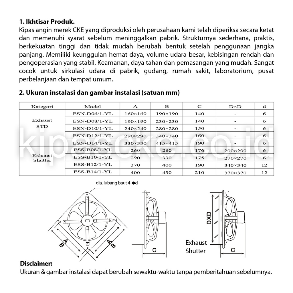 KIPAS DINDING/Exhaust Fan Standard Shutter BN 16 Inch Exhaust Dinding Eksos Dinding Blower Gedung Kipas Hexos 16 Inch