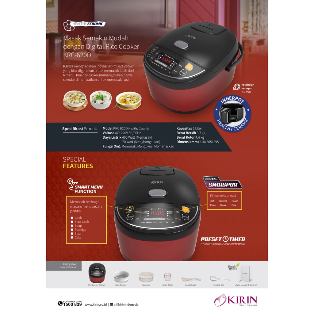 KIRIN Rice Cooker Digital 2 Liter KRC-620D