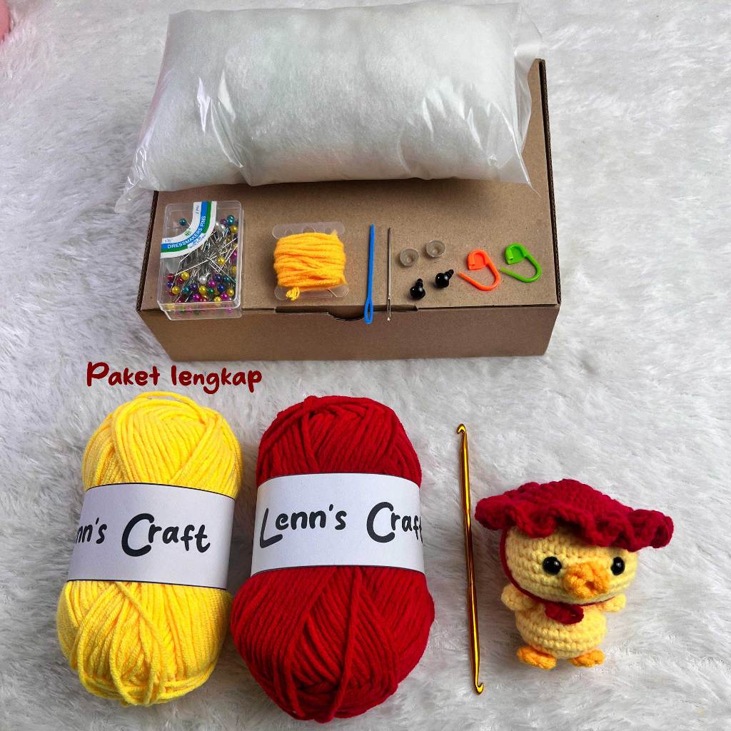 Paket Lengkap Bahan KIT DIY Crochet Amigurumi Bebek dan Video Tutorial Belajar Merajut Boneka Rajut Pemula