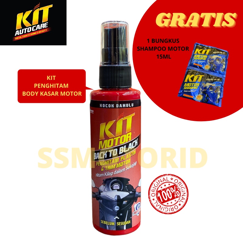 KIT Motor Back To Black 115 mL - PENGHITAM Body Kasar Plastik dan Trim Motor Menjadi Hitam Mengkilap ORIGINAL 100% PROMO FREE 1 Bungkus Shampoo Motor 15 mL