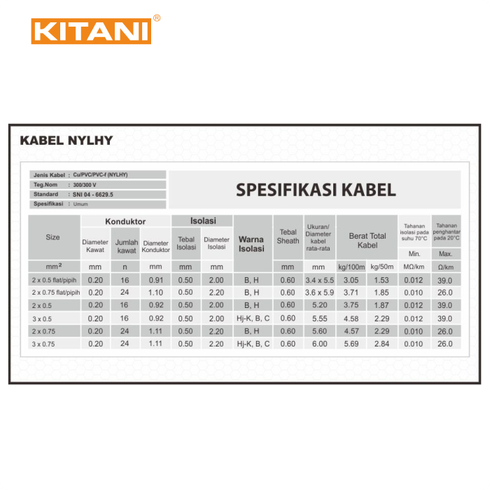KITANI - NYLHY 2×0.5 mm² - 25 Meter - Kabel Listrik Tembaga Serabut