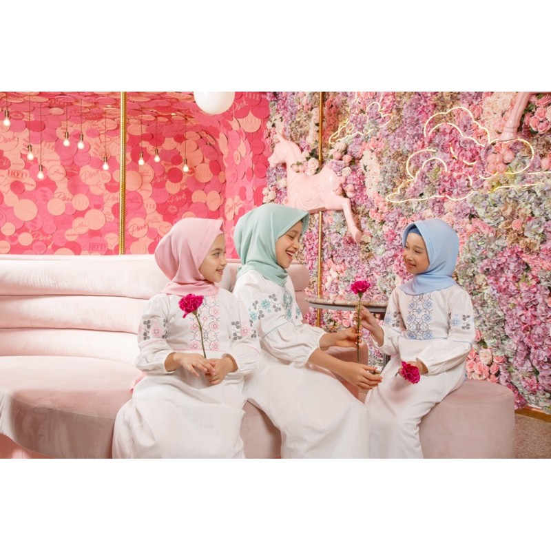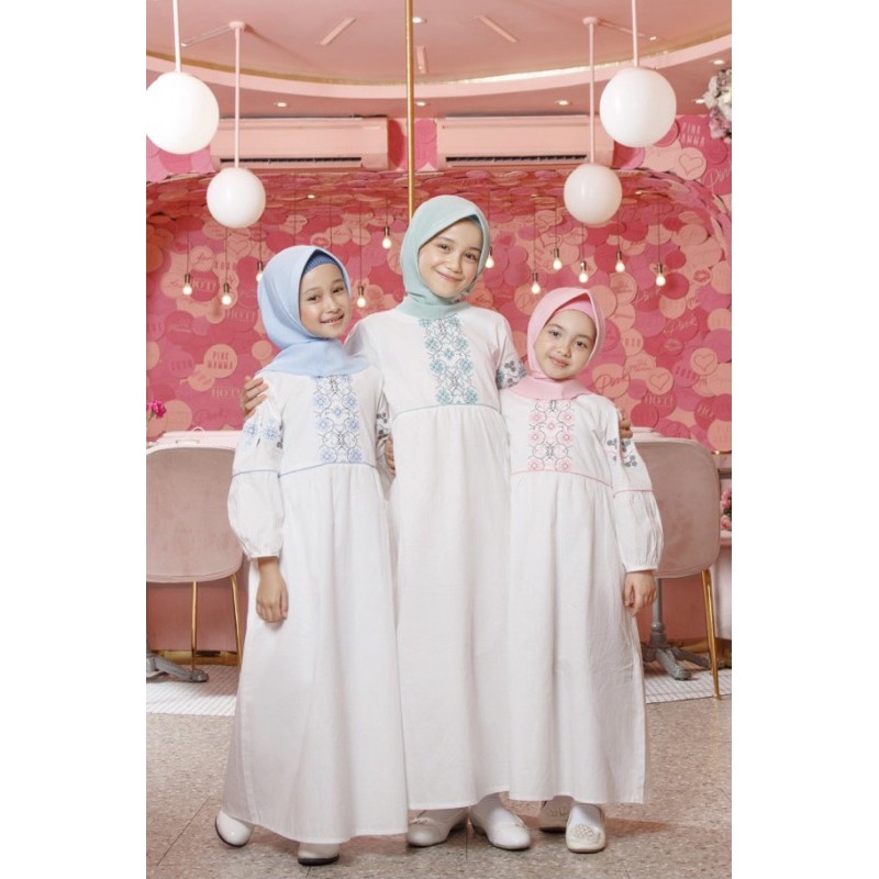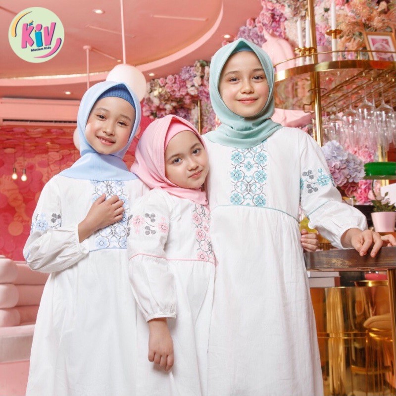 KIV Gamis Anak Perempuan Putih dengan Bordir DO 142 manasik seragam sekolah GMPKL 01