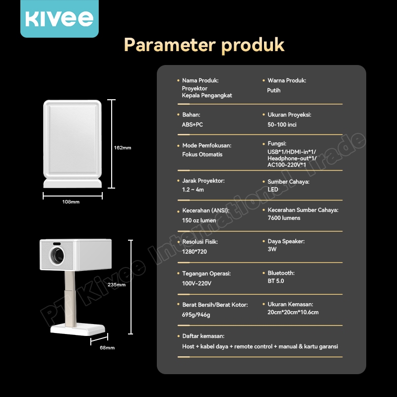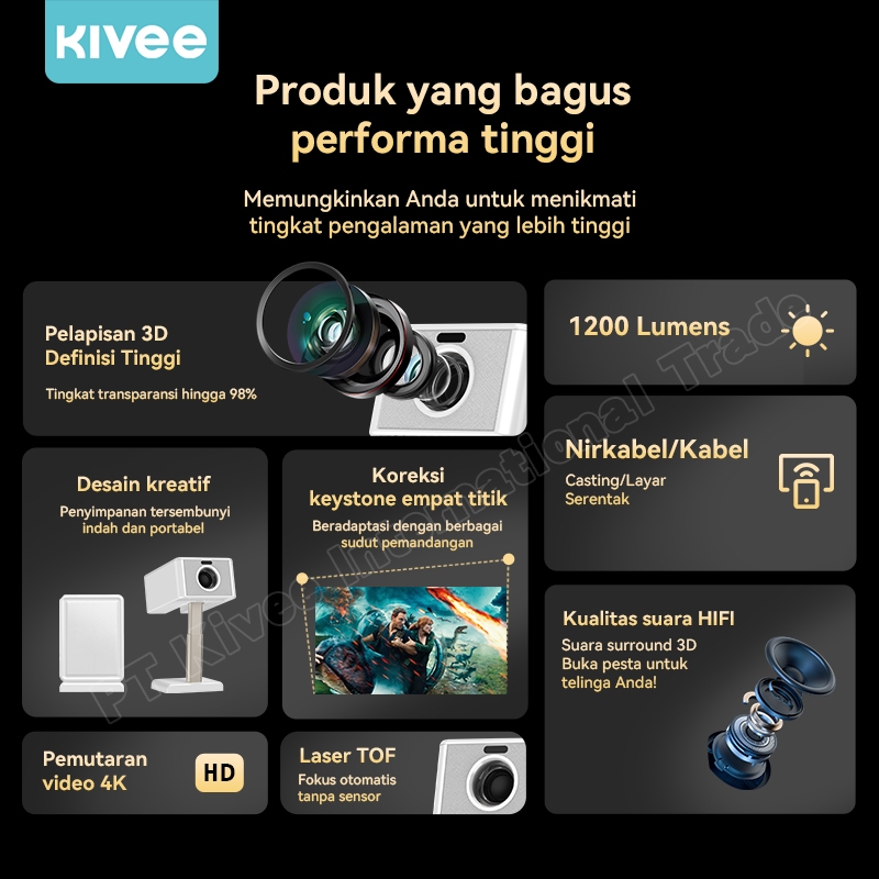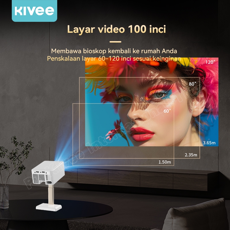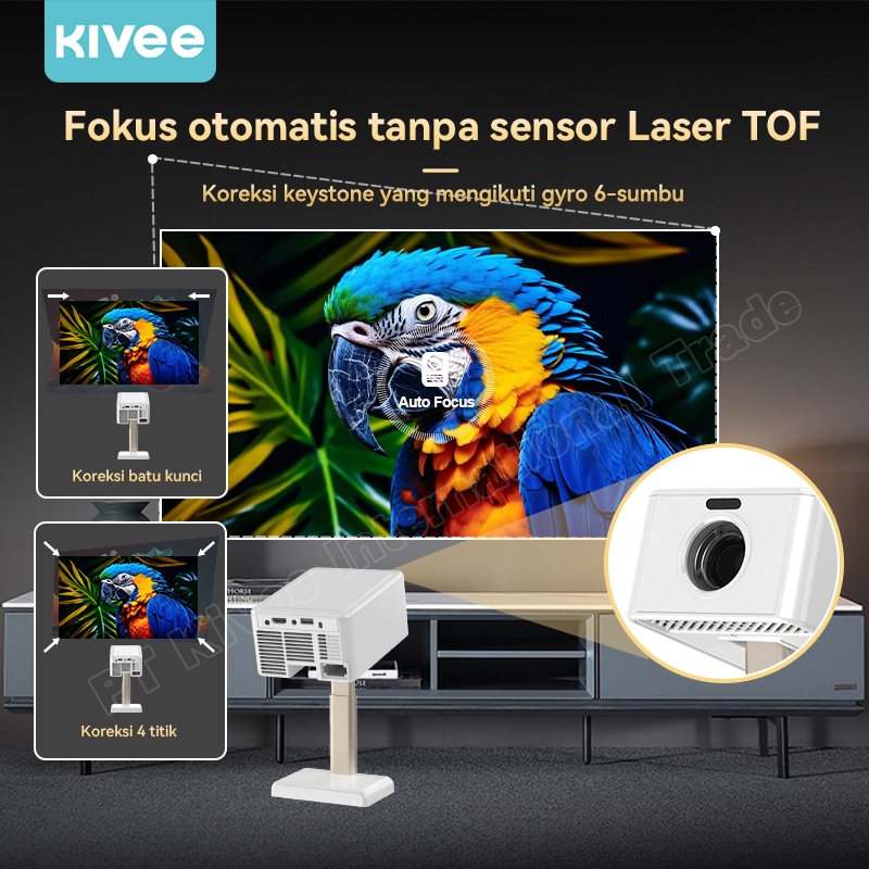 Proyektor KIVEE 2026 2K HD KV-PJ03 100 inci, Fokus Cerdas Sepenuhnya Otomatis, Garansi 3 Tahun