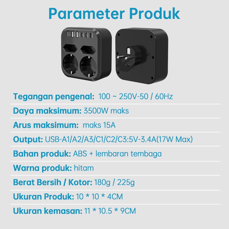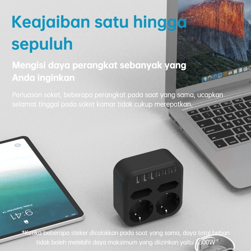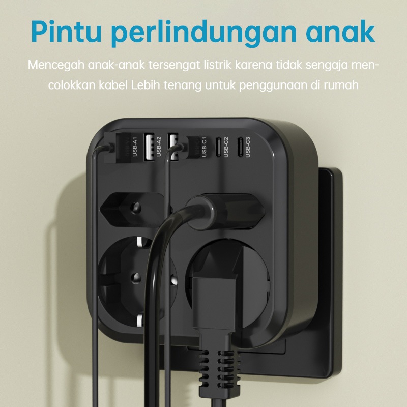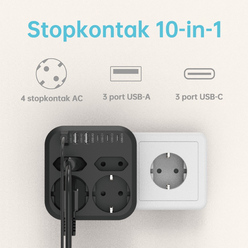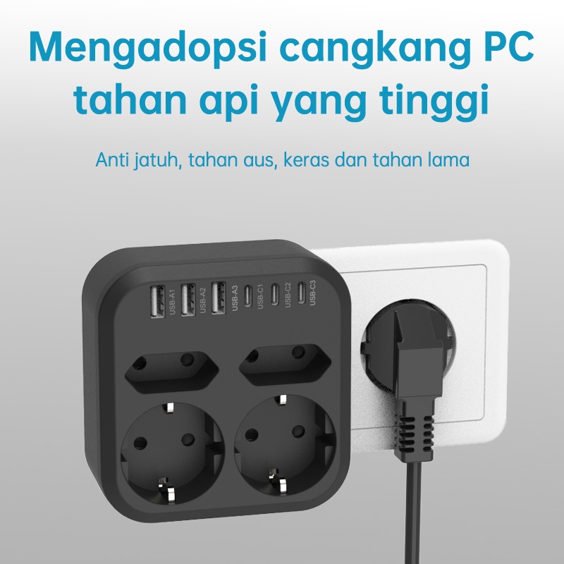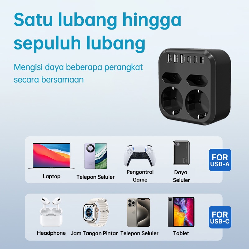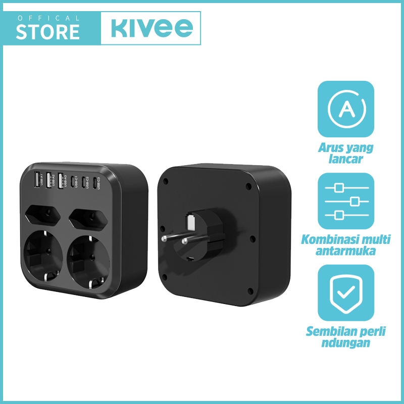 KIVEE Stop kontak colokan listrik 10 in 1 USB*3+Colokan lubang*4 + Type C*4 Garansi 1 tahun