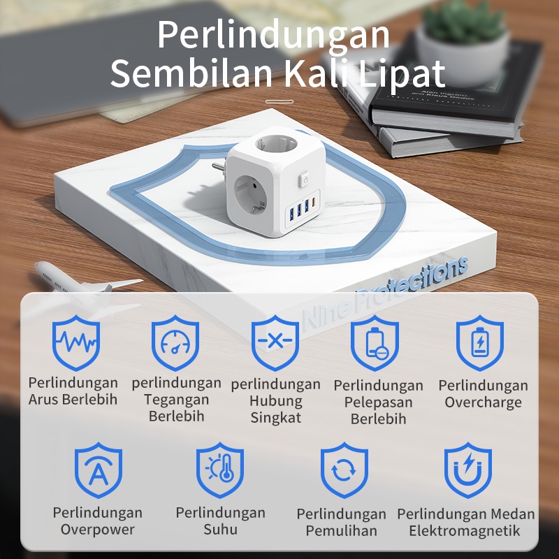 HOT KIVEE Stop Kontak Colokan Listrik KV-AE21Pro 7-in-1 USB Type C Fast charging Max 4000W Original