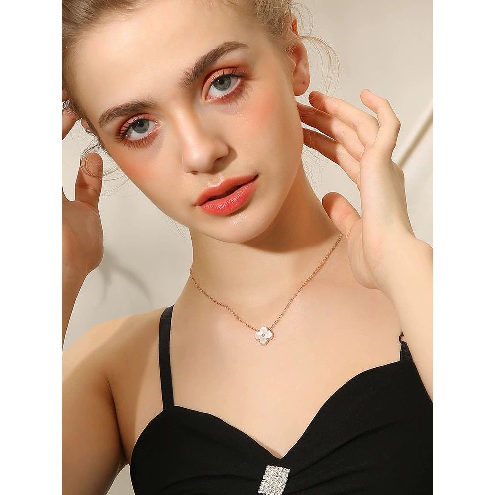 KL88 - Kalung Klavikula Bentuk Daun Clover Warna Gold Model Korea Elegant Titanium Steel