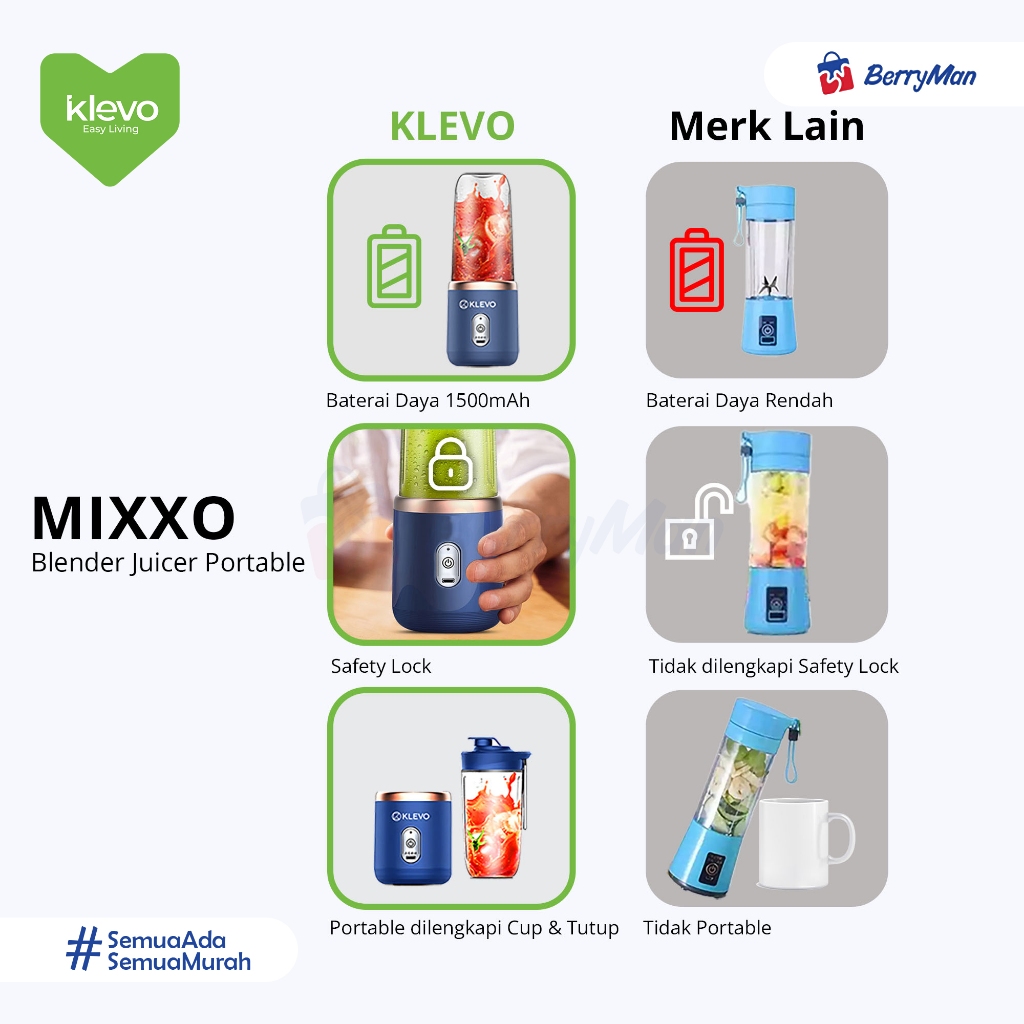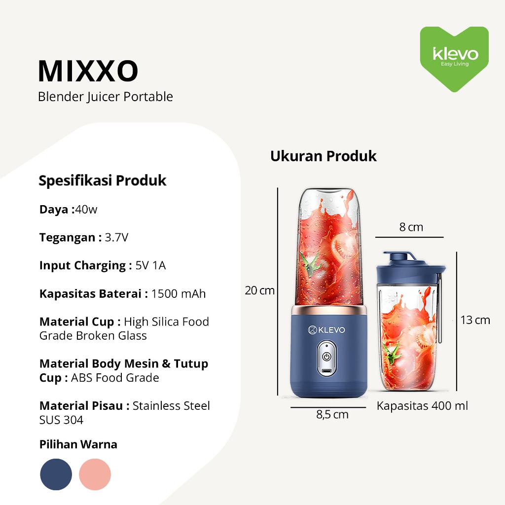 KLEVO MIXXO BLENDER JUICER PORTABLE 6 Mata Pisau Juice Cup Mini 400ML